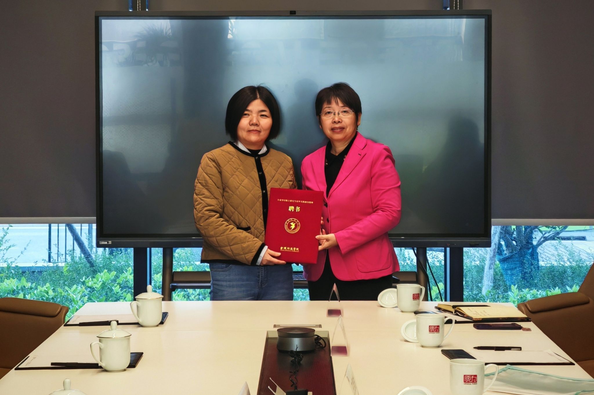 会上,张燕为江苏原力数字科技股份有限公司技术主管李开玲颁发了硕士研究生校外指导教师聘书。
