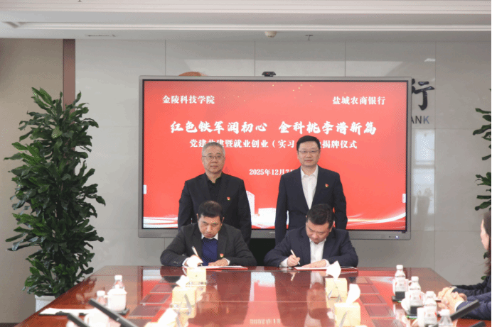 许闯表示,盐城农商银行作为一家服务盐城市区的地方金融机构,从成立至今,传承和弘扬新四军“铁军精神”,发挥党建引领作用,奋力做好金融“五篇大文章”,全力支持地方经济高质量发展。他指出,目前,盐城农商银行已有10余名金科院的校友在相关岗位中担任业务骨干,金科院毕业生以扎实的专业基础和过硬的应用本领获得了一致好评。他表示,当前盐城农商银行迫切需要经济、软件、人工智能等专业方向的应用型人才支持,这也为盐城农商银行与金科院进一步深入合作共建提供了契机。希望双方能以本次共建为起点,以党建为引领,以校友为纽带,携手开创服务地方社会经济发展的校企合作新篇章。