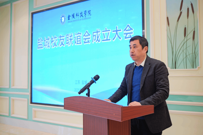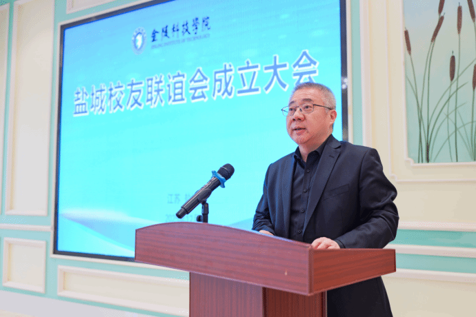 高永祥向联谊会授牌、授旗并讲话,向校友们介绍了近年来学校的发展情况,并对盐城校友联谊会及校友们提出了殷切希望。他指出,校友是母校最宝贵的财富,也是母校声誉最生动的名片。广大盐城校友在盐城热土上砥砺奋进、逐梦前行,以“金科人”的初心和过硬的本领,为区域发展贡献力量,同时,校友们始终心系母校,通过多种方式为学校发展建言献策、添力赋能。他表示,期待盐城校友联谊会充分发挥桥梁纽带作用,汇聚更多校友智慧与力量,与母校在人才培养、科研创新、成果转化等领域深化联动,携手谱写共创共赢的崭新篇章。成立大会由庞海燕主持。