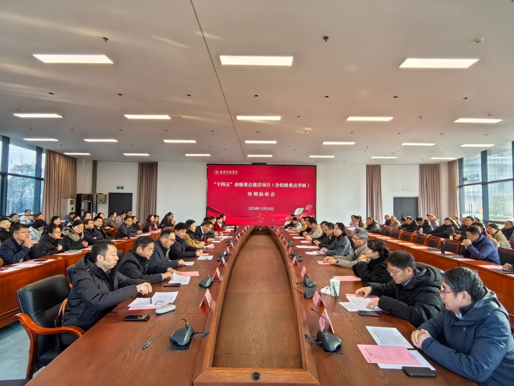 12月25日,“十四五”市级重点建设项目及校级重点学科终期验收会在3号科技楼110会议室召开。全体评审专家、学科建设办公室、教务处、科技处负责人,“十四五”市级重点建设项目负责人、校级重点学科负责人及相关人员参加会议。会议由副校长王延光主持。