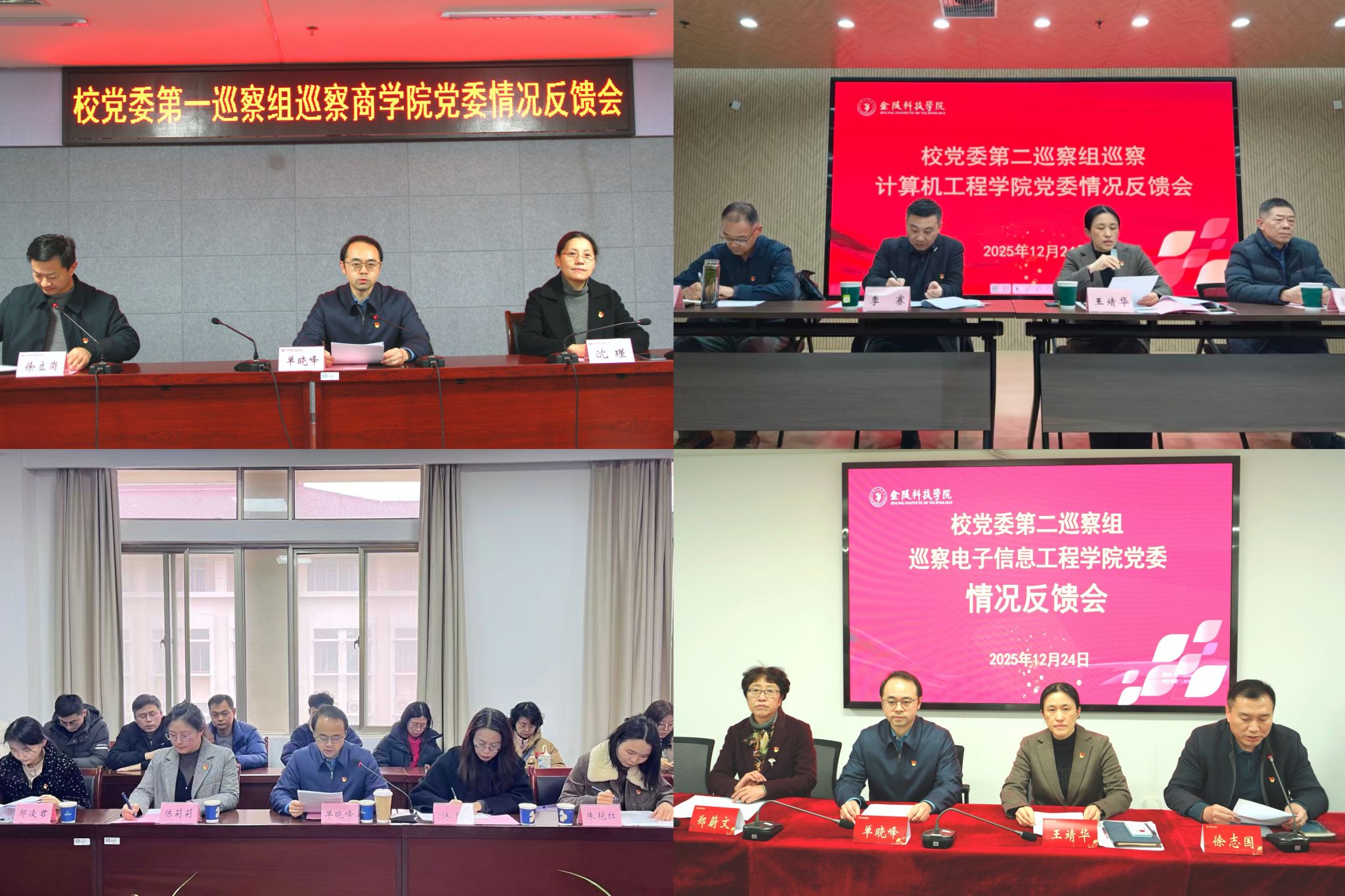 根据学校党委巡察工作安排,12月24日,校党委召开第四轮巡察情况反馈会。会议传达了党委书记刘志远在党委常委会审议本轮巡察情况报告时的讲话精神,各巡察组组长分别向被巡察党组织反馈巡察意见。被巡察党组织联系校领导出席会议就抓好巡察整改工作提出要求。被巡察党组织主要负责人主持会议并作表态发言。