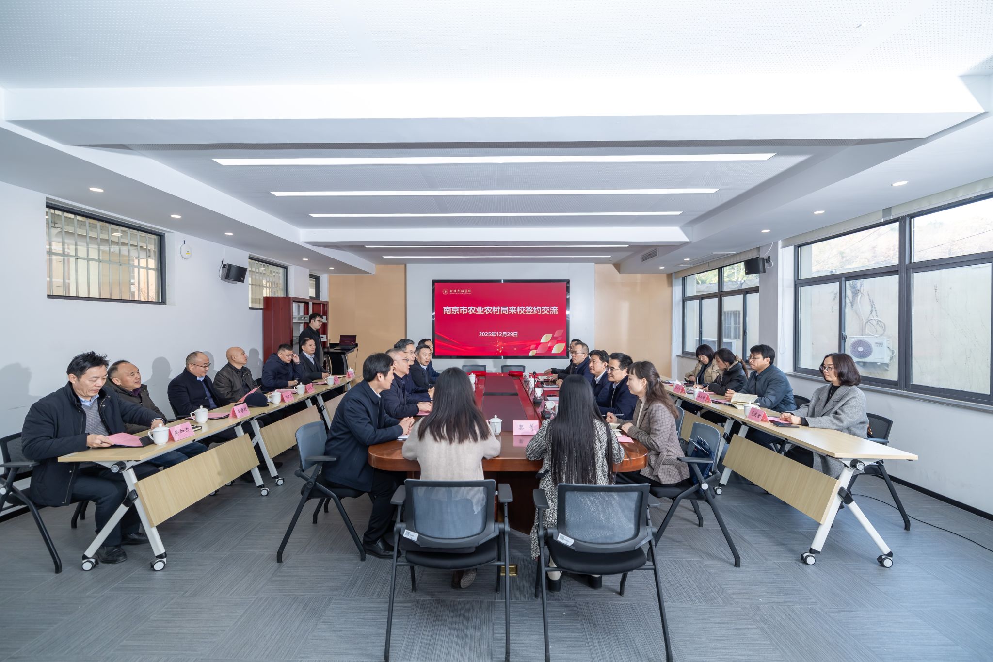 12月29日,南京市农业农村局党组书记、局长张屹,副局长俞继东带领办公室、乡村产业发展处、科技教育处、蔬菜园艺处、畜牧与畜禽屠宰管理处、种业管理处、市农业技术推广站、市农业装备推广中心等负责人来校调研交流并与kaiyun官网签署“十五五”全面深化合作框架协议。校党委书记刘志远、校长季赛出席会议。签约活动由党委常委、副校长高永祥主持。