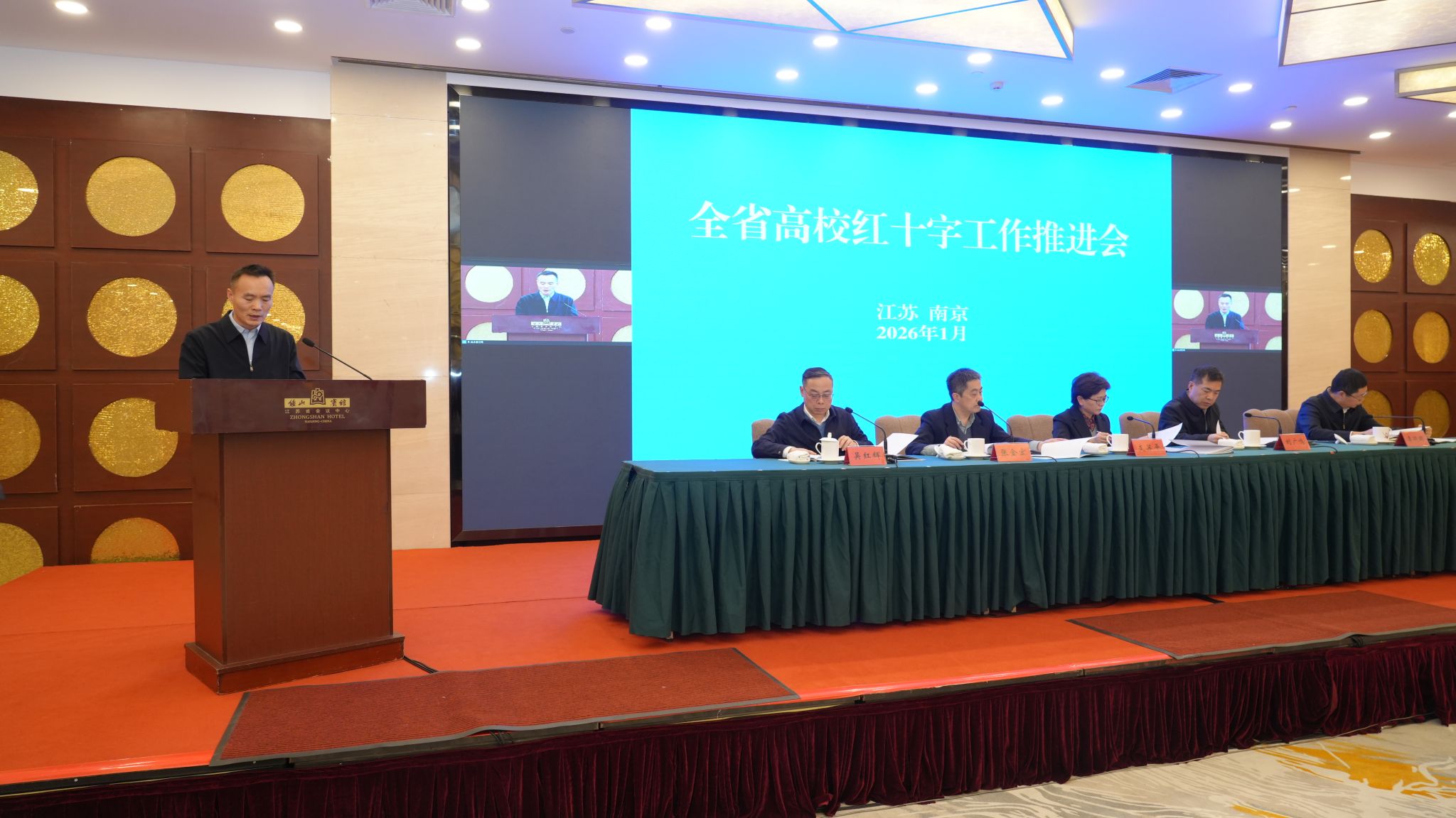 1月12日,由江苏省红十字会、江苏省教育厅、江苏省卫生健康委员会、共青团江苏省委联合举办的全省高校红十字工作推进会在宁召开,全省各高校、各设区市红十字会、教育局、卫健委、团委相关人员参加会议。副校长王延光及体育部、团委、后勤管理处相关人员和学生志愿者代表参加会议。