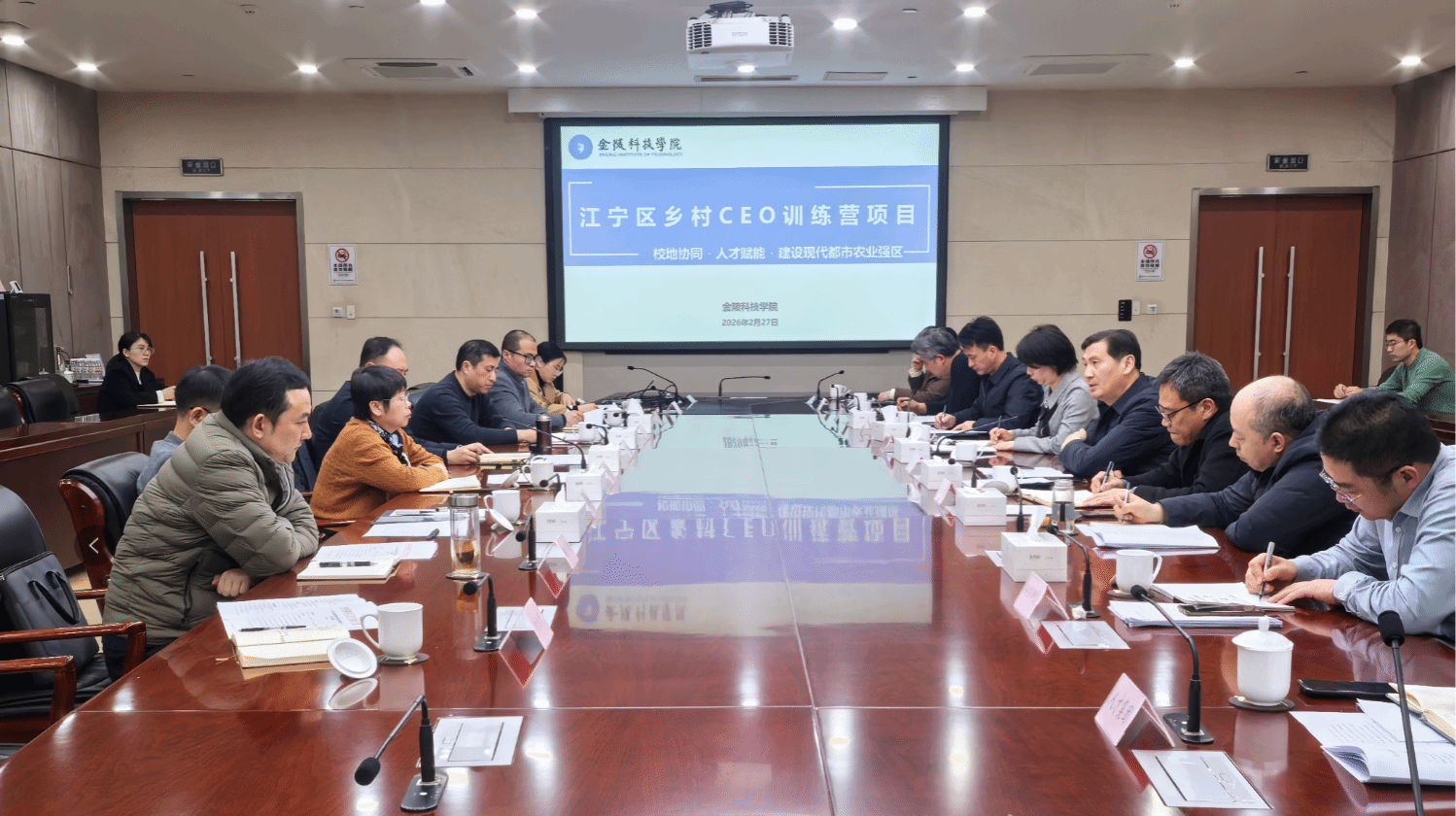 2月27日下午,副校长张燕带队赴江宁区开展校地融合交流并推进“乡村CEO训练营”项目合作。江宁区委副书记张安接待张燕一行并主持召开项目合作座谈会。区委办公室、组织部,区人力资源和社会保障局、农业农村局,区团委,湖熟街道、汤山街道,江宁人才集团等单位负责同志参加座谈交流。