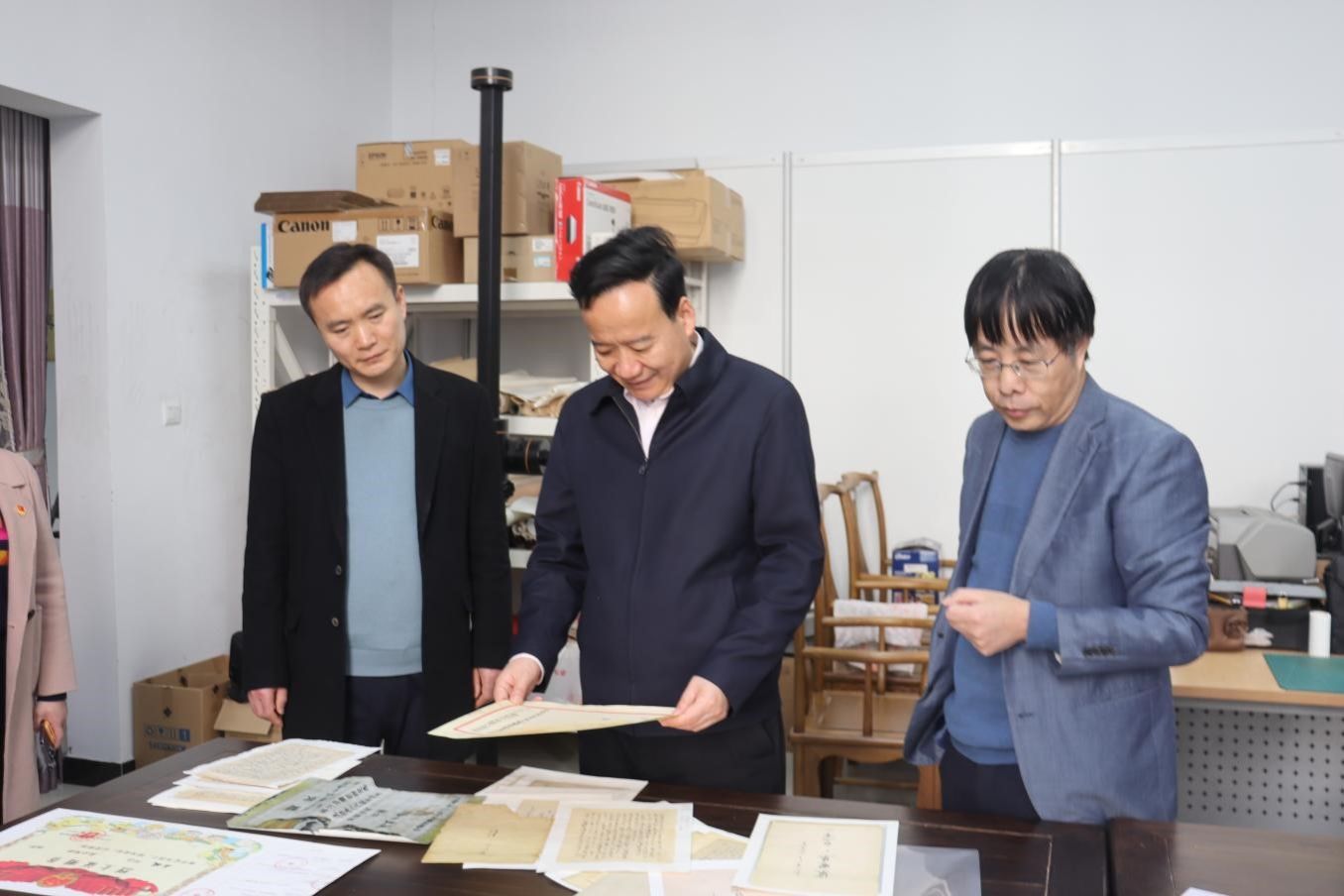 刘永彪一行走访了人文学院实验室、办公室等场所,详细询问了师生学习工作情况,认真听取了学科专业建设情况工作汇报,与古典文献学等专业骨干教师进行了座谈交流,并就推动人文学院高质量发展提出了具体意见和要求。