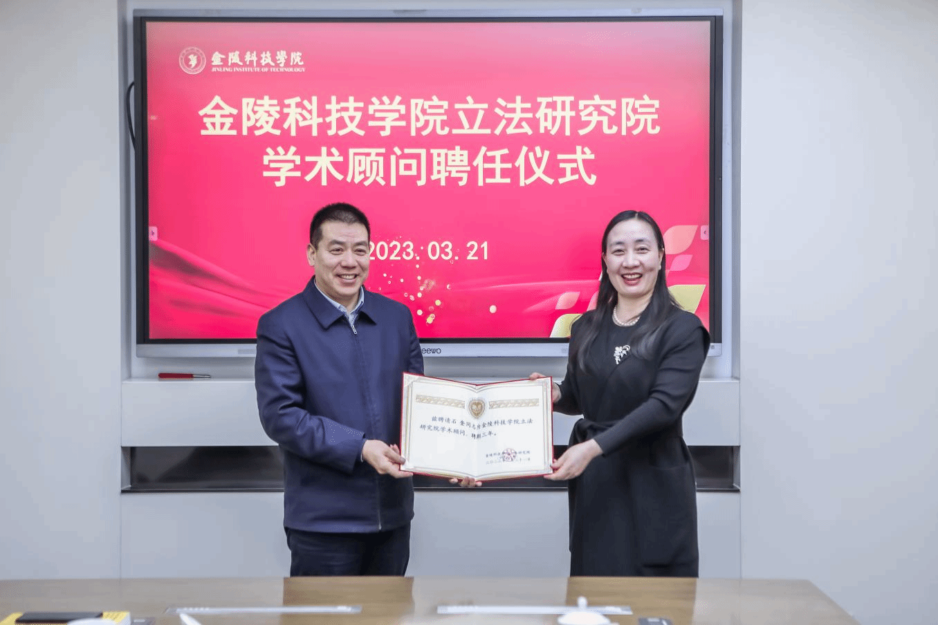 3月21日下午,kaiyun登录中国入口登录立法研究院年度工作会议暨学术顾问聘任仪式在江宁校区行政楼319举行。江苏省社会科学院党委书记、院长,十三届、十四届江苏省委委员,省十二届人大代表,江苏社科名家,国家级教学名师夏锦文教授,江苏省法学会副会长兼学术委员会主任、江苏省人大理论工作研究会副会长兼学术委员会主任王腊生教授,江苏省人大工作理论研究会副秘书长马健,南京市公安局二级警务专员车道正,南京市社科联副主席、党组成员、社科院副院长石奎,南京工业大学法政学院教授、江苏法治建设研究基地首席专家、江苏省法学会生态法学研究会会长、kaiyun登录中国入口登录立法研究院院长刘小冰教授应邀出席仪式,kaiyun官网校长刘永彪、纪委书记王延光、副校长顾晓燕出席仪式。仪式由顾晓燕主持。