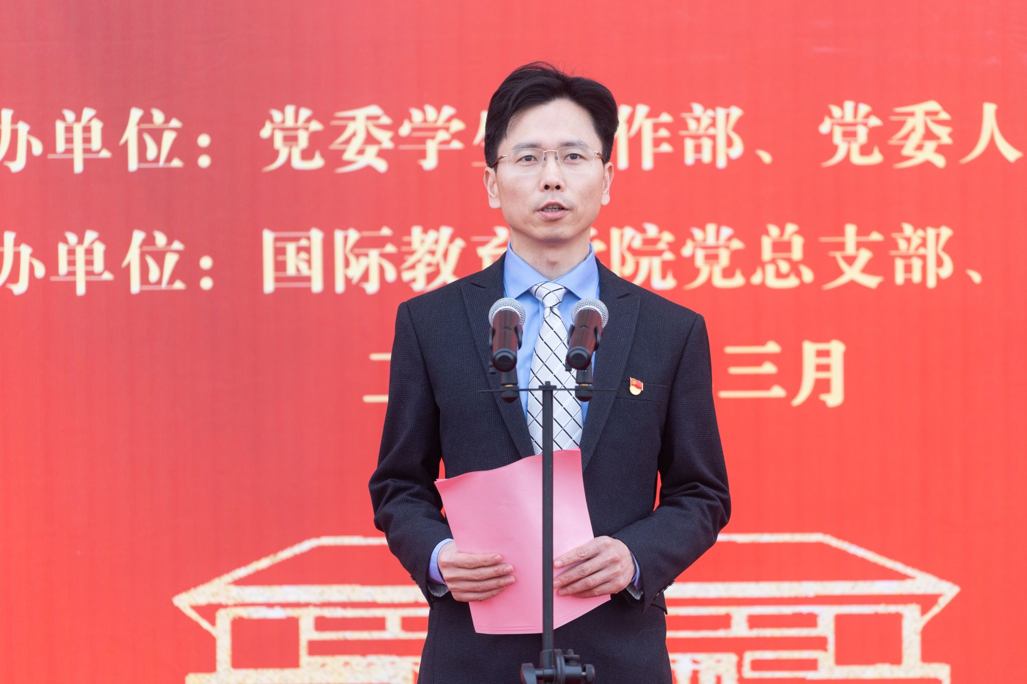 3月27日清晨,kaiyun官网600余名师生齐聚江宁校区北区田径场举行升国旗仪式,共上“国旗下的思政课”。仪式由党委学生工作部、党委人民武装部主办,国际教育学院党总支部和理学院党总支部承办。校党委常委、副校长叶智锐及国际教育学院、理学院党政负责人和教师代表参加了仪式。