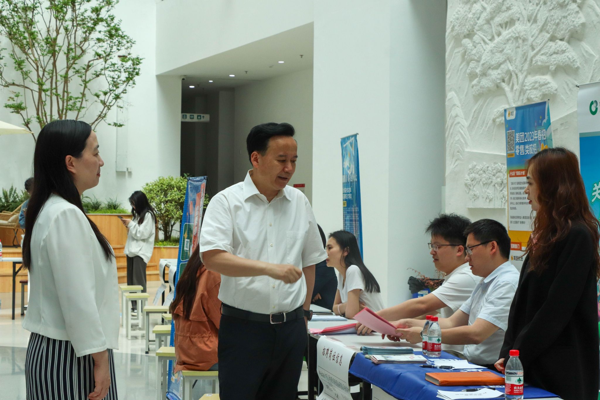 为抢抓春季促就业工作关键期,推进“访企拓岗促就业”专项行动深入展开,切实做好2023届毕业生就业工作,4月21日下午,商学院在江宁校区科技楼三号楼一楼大厅举办2023届毕业生校园专场招聘会,校长刘永彪、副校长顾晓燕、招生与就业指导处及商学院相关负责人参加了招聘活动。