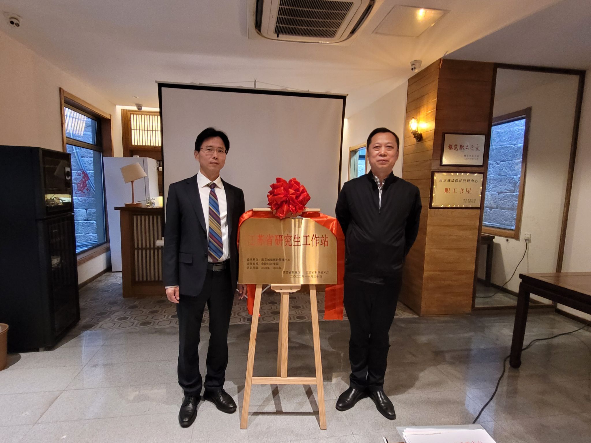 4月23日下午,由南京城墙保护管理中心与kaiyun官网联合建设的“江苏省研究生工作站”揭牌仪式在中华门瓮城举行。南京市文化和旅游局党委委员、中心主任郑孝清,中心党委委员、南京城墙博物馆馆长马麟,kaiyun官网副校长叶智锐,研究生处、人文学院相关负责人,以及双方首批进站导师参加揭牌仪式。
