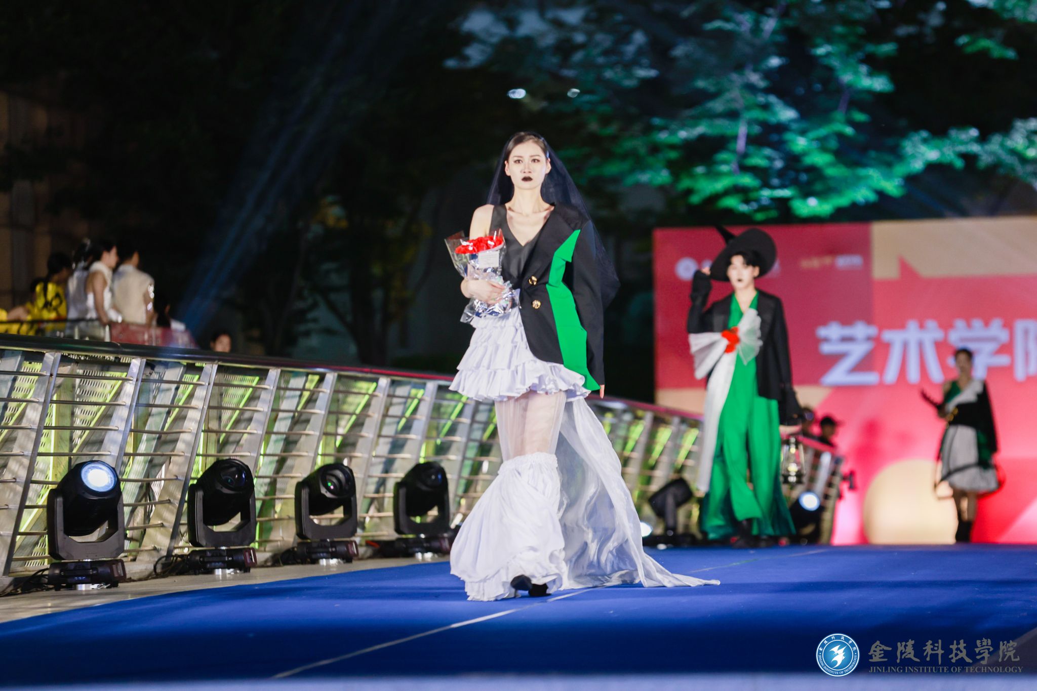 本届毕业设计作品展由静态展和动态秀两部分组成,共展出艺术学院服装与服饰设计、服装设计与工程、环境设计、产品设计、工业设计五个专业学生的毕业设计作品。其中服装动态秀以“启程”为主题,以毕业设计的创作为新的起点,将时尚活力融入艺术创作,分创意类、童装类(包含校企合作园服作品)、环保类、实用类、传统类五个类别。艺术学院师生通过2023届毕业生设计作品展演活动,重现金陵文脉背景下传统与现代结合、艺术与科技结合、教育与产业结合的服饰文化。