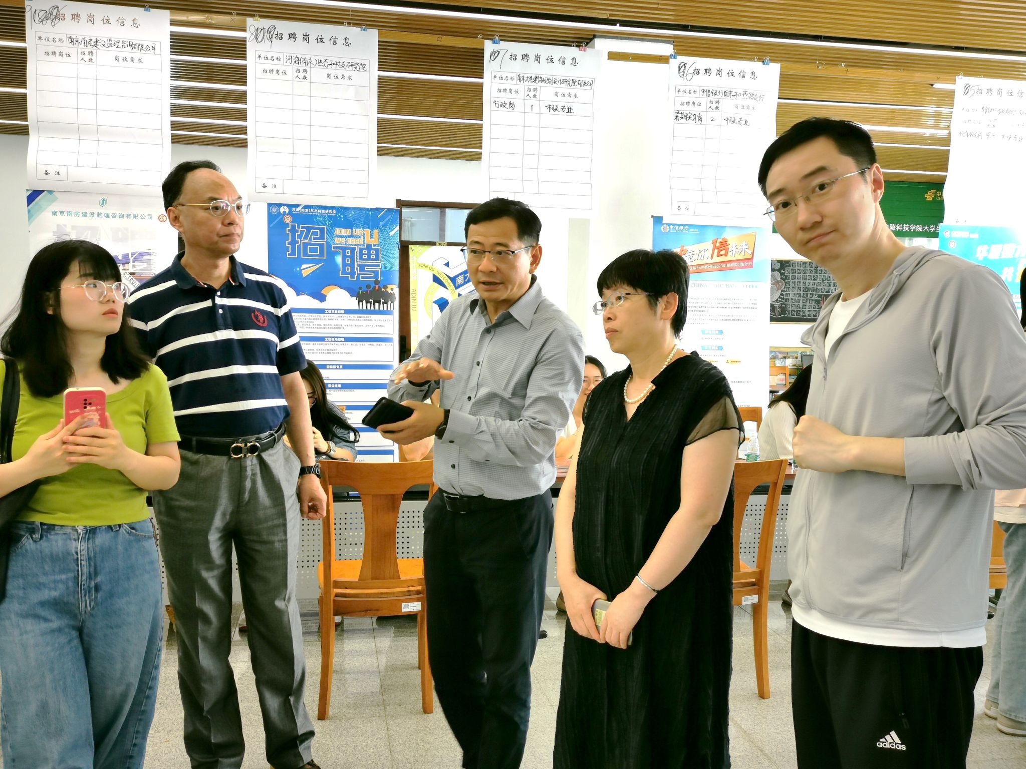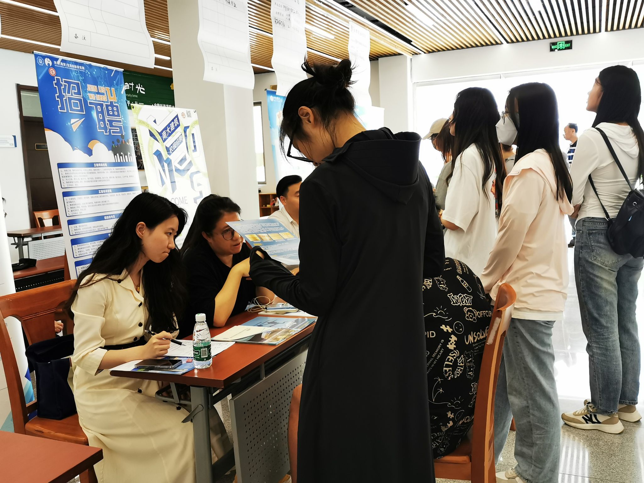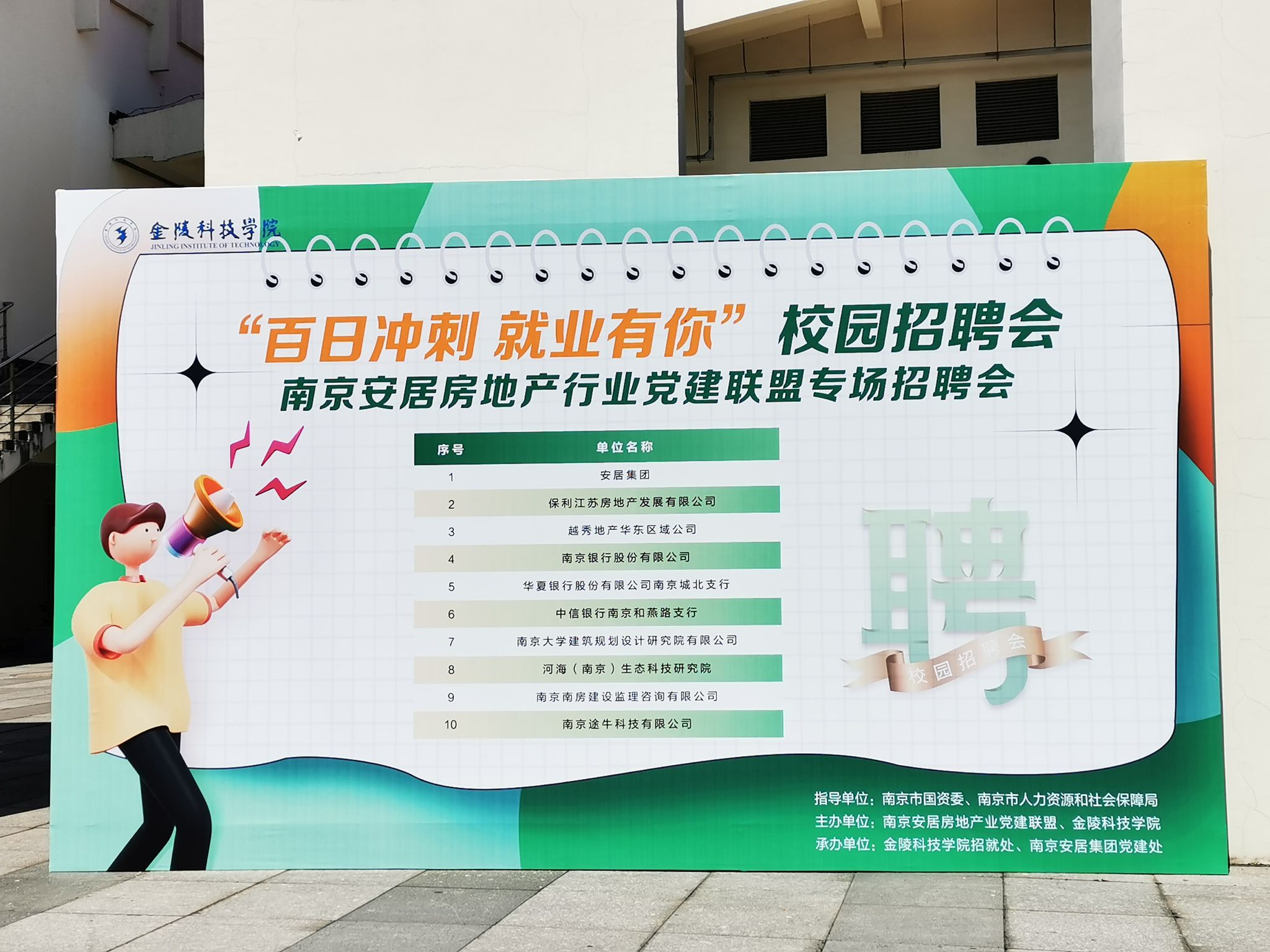 此次招聘会邀请了南京安居集团、保利江苏房地产发展有限公司、越秀地产华东区域公司、南京银行股份有限公司、华夏银行股份有限公司南京城北支行、中信银行南京和燕路支行、南京大学建筑规划设计研究院有限公司、河海(南京)生态科技研究院、南京南房建设监理咨询有限公司、南京途牛科技有限公司等10家优质企业到校参会,主要招聘岗位有财务管理、营销策划、银行柜台服务、物业公司服务管理等。毕业生们主动与用人单位沟通交流,详细了解企业情况、薪资待遇以及岗位职责等相关信息,并结合自身专业优势和意向积极选择心仪的单位投递简历。