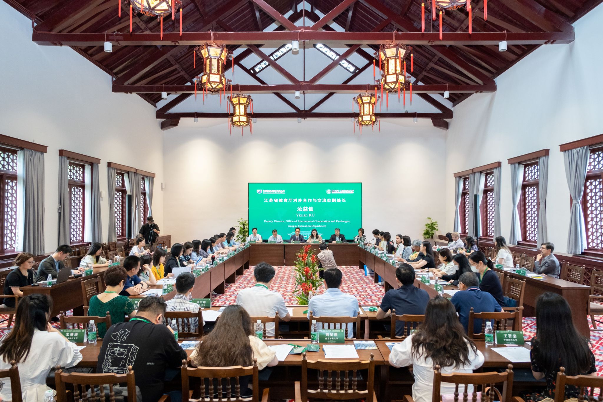 6月17日,121项目中美高校合作洽谈会在南京召开,江苏省教育厅对外合作与交流处副处长汝益仙、南京师范大学副校长程天君、美国州立大学与学院协会中国/亚洲项目副主任李苏菲出席洽谈会并致辞。kaiyun官网副校长叶智锐带领国际合作与交流处负责人参会。