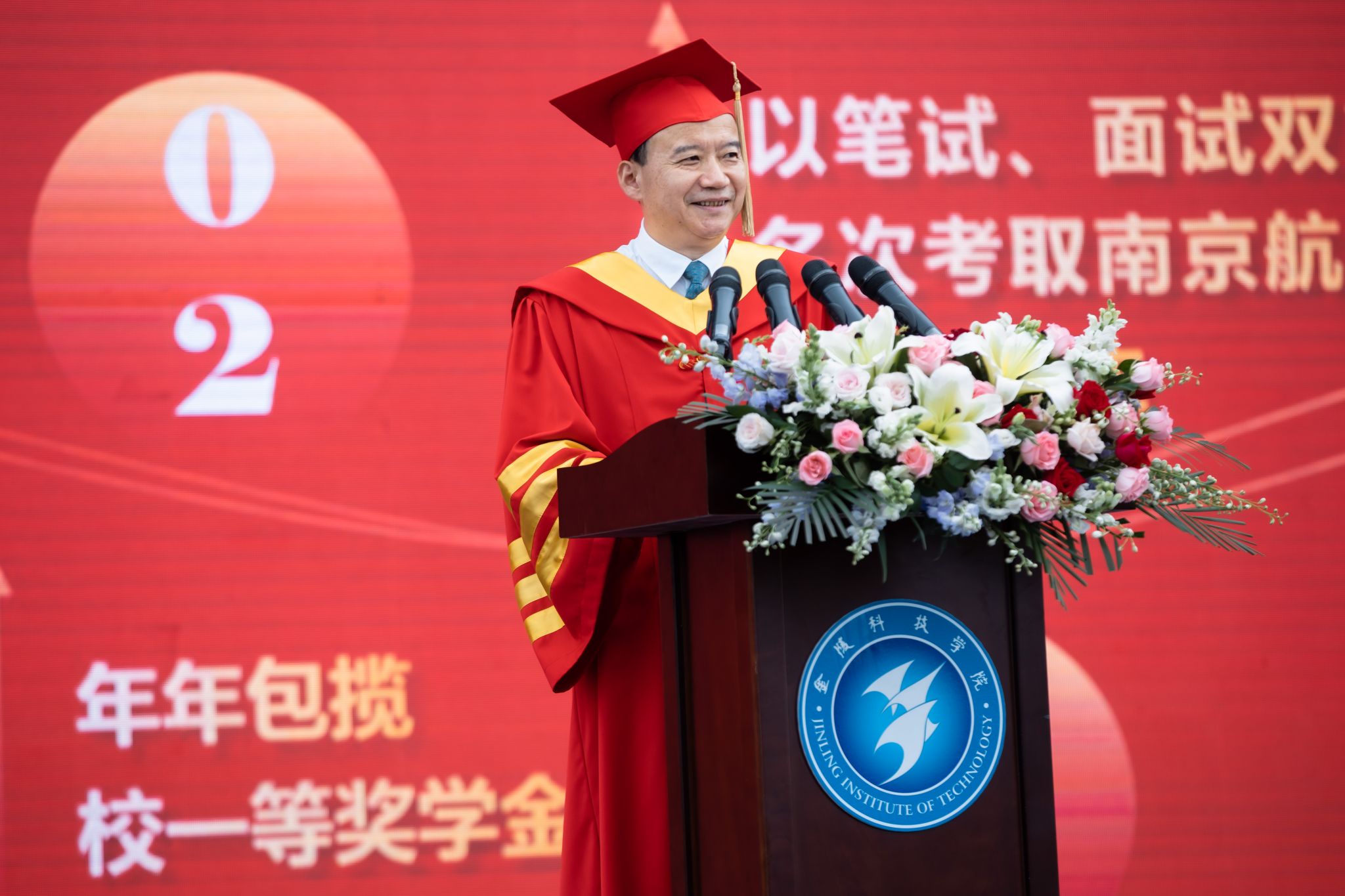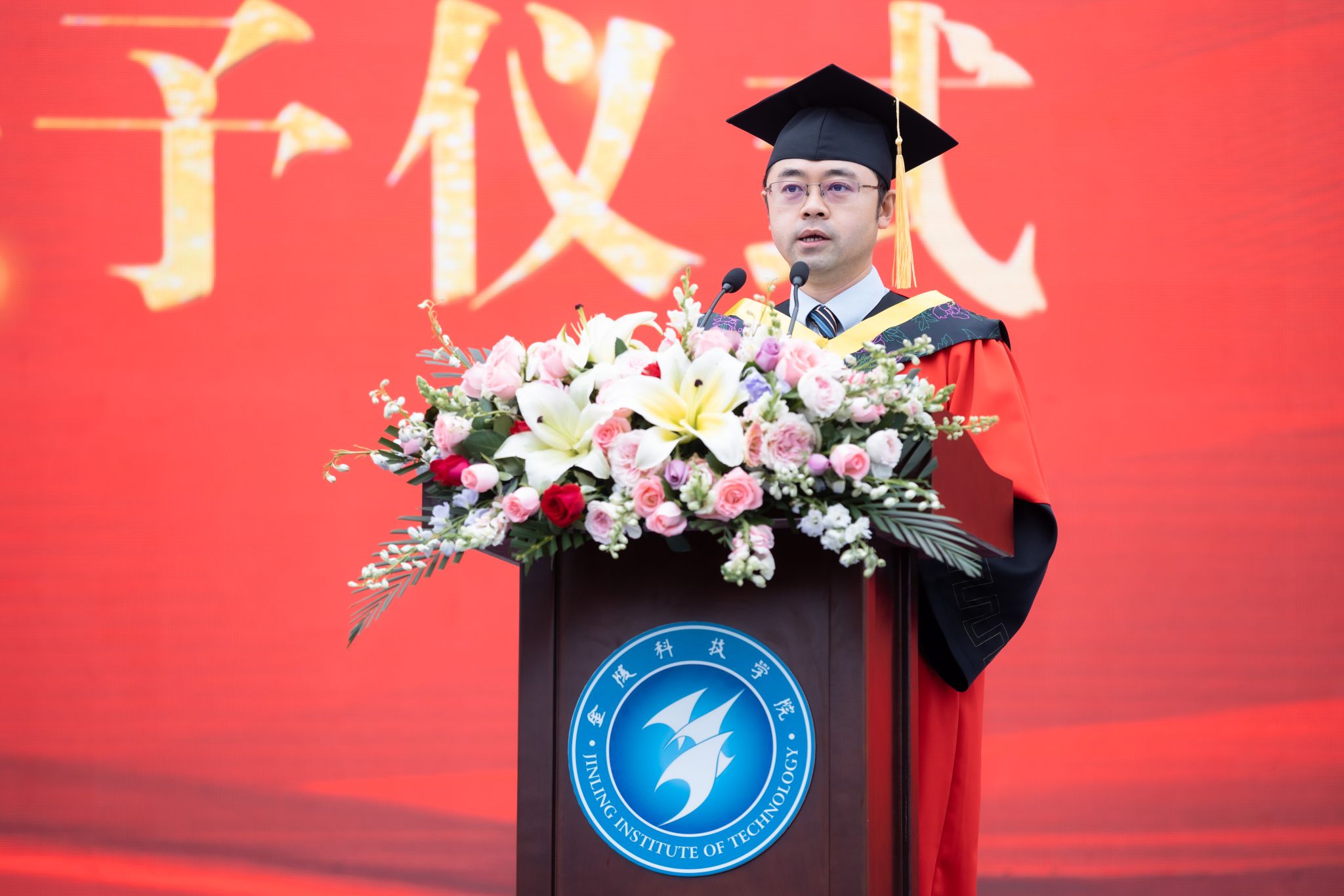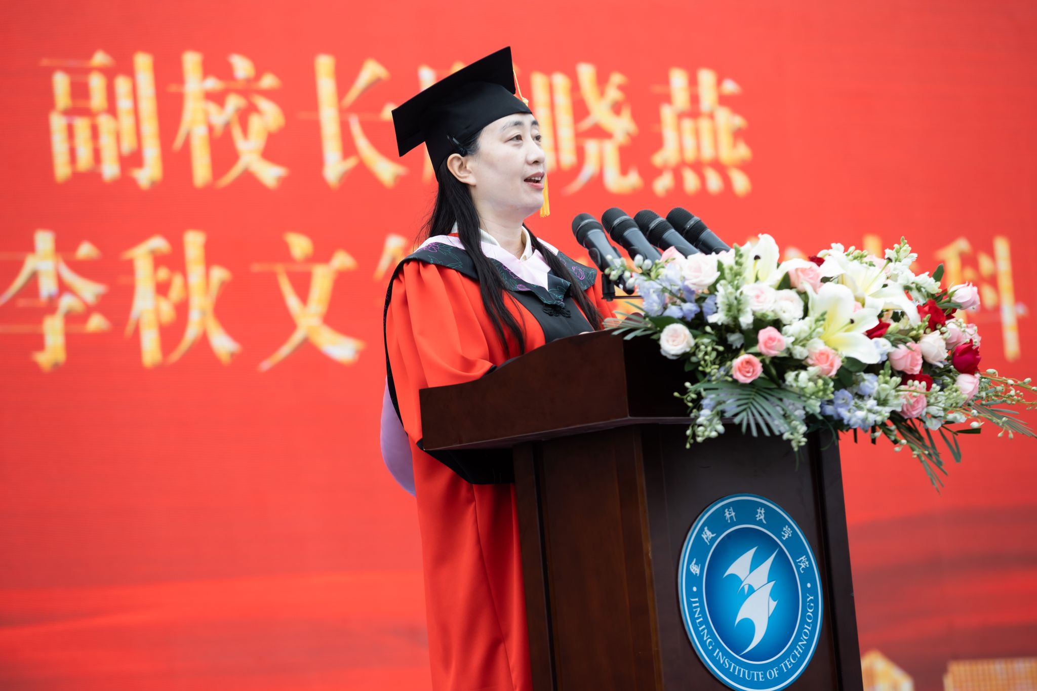 典礼现场播放了《怀念青春》毕业纪念视频,毕业生代表为教职员工代表献花表达感激之情。教师代表、园艺园林学院马艳教授在发言中希望毕业生们踏入社会后要保持奋斗精神、保持好奇心、志存高远。毕业生代表、外国语学院耿碧云同学在发言中分享了在学校四年的成长收获,表达了对母校的依依不舍之情。