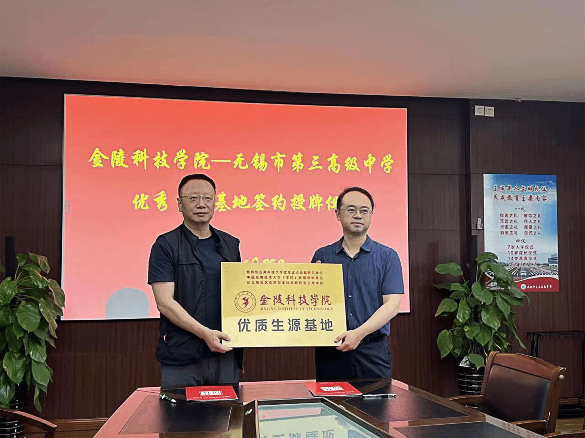6月25日下午,kaiyun官网与无锡市第三高级中学的优质生源基地签约授牌仪式在无锡市第三高级中学举行。校党委副书记单晓峰、网络与通信工程学院党委书记陈健、无锡市第三高级中学副校长周宏俊、教务处副主任吉缪明参加了仪式。