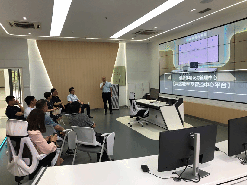 刘峰表示,通过现场参观和观看学校宣传片,真切感受到学校教育教学数字化建设的卓越成就和良好发展态势。希望研究会能进一步加强与学校的密切联系和联合协作,在人才培养、平台建设、智慧教学场景、数字校园治理等方面开展人工智能教育教学的应用推广和发展创新,营造“用、评、教”紧密结合的智慧教育教学新生态。