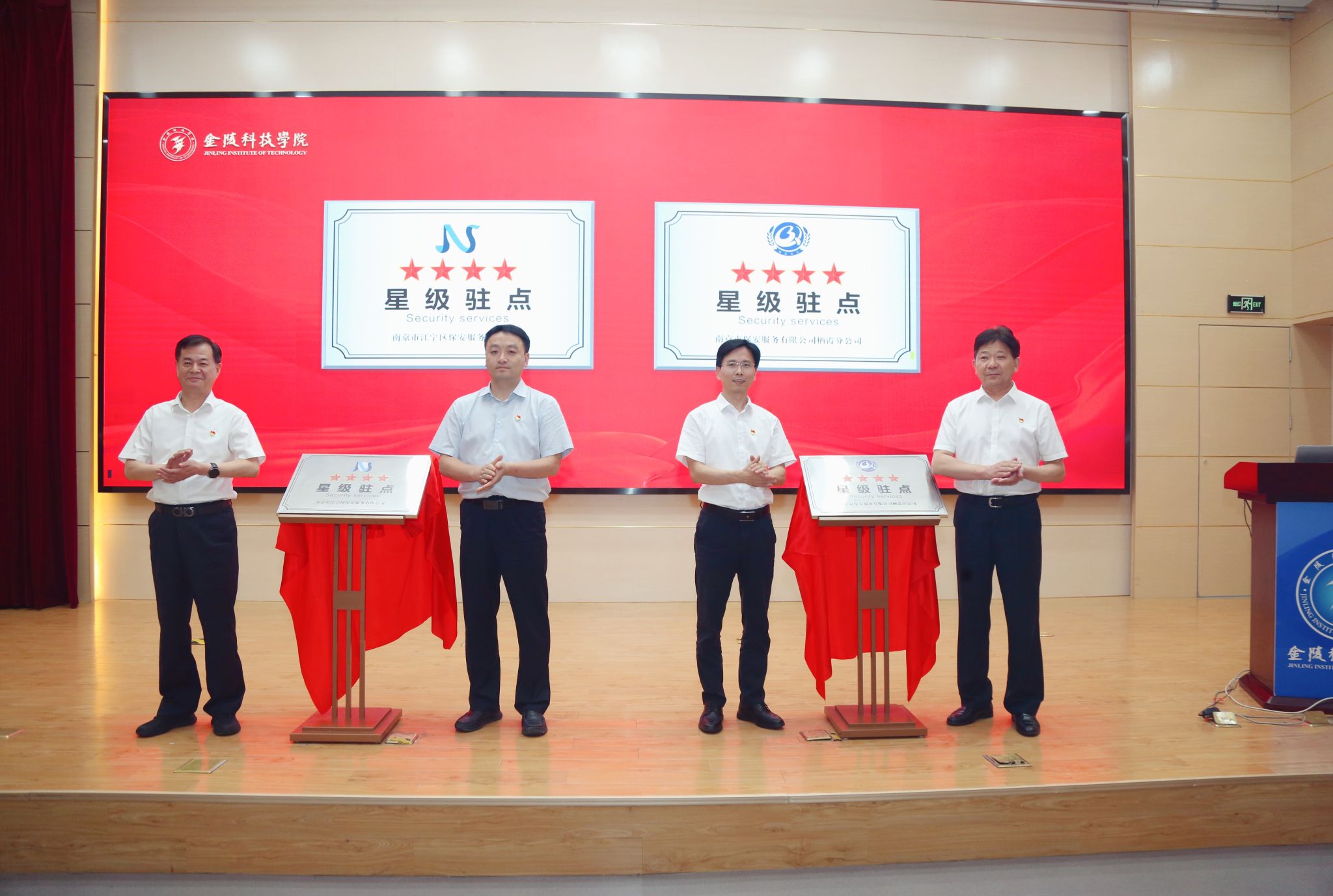 在挂牌亮诺仪式上,两校区保安服务公司宣读新一轮安保服务承诺,并向学校递交了承诺书。叶智锐、季海以及两家保安服务公司主要负责人共同为两校区星级驻点揭牌。