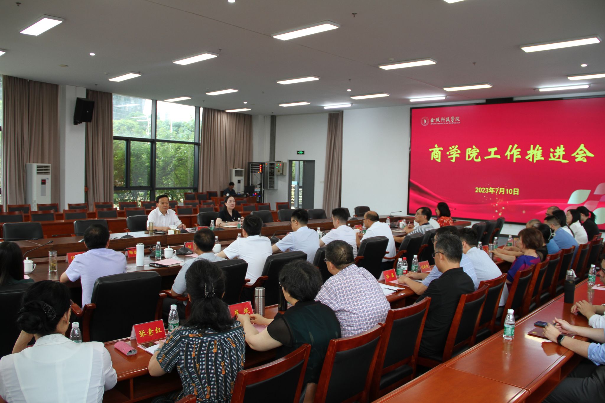 7月10日上午,商学院在科技楼3号楼110会议室召开工作推进会。校长刘永彪、副校长顾晓燕,商学院领导班子、学科带头人、系正副主任、专业负责人、市级及以上学术研究团队成员、在研市厅级及以上项目负责人、全体教授、45岁以下青年博士以及机关科室负责人等参加会议。会议由顾晓燕主持。