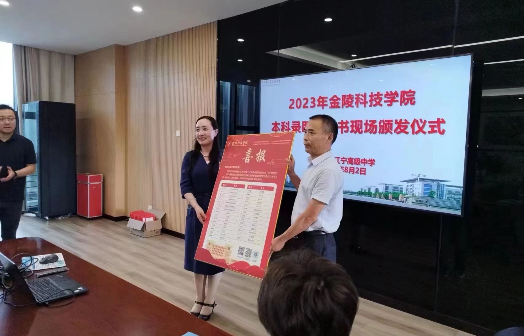 8月2日下午3点,副校长顾晓燕一行前往学校“优质生源基地”一一南京市江宁高级中学,举行本科录取通知书现场颁发仪式。南京市江宁高级中学副校长张格波、高三年级组副主任倪仁宗,kaiyun官网招生与就业指导处处长闵光琛、艺术学院副书记鲍锐、本科招生办主任刘亚斌以及29位录取新生、部分新生家长参加仪式。