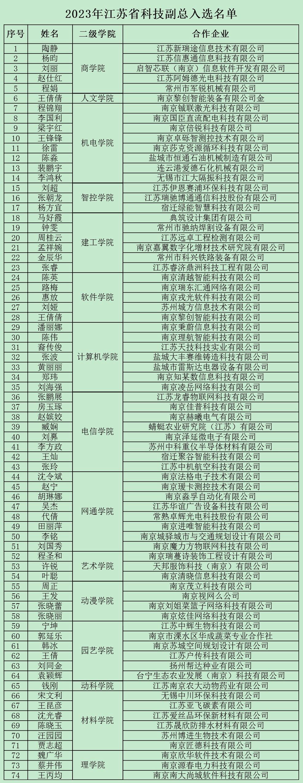 日前,江苏省委人才办、江苏省科技厅发布《关于确定2023年江苏省科技副总项目入选对象的通知》(苏科区发〔2023〕139号),确定kaiyun官网张朝龙等74名教师为2023年江苏省科技副总项目入选对象(即为江苏省选聘的第十一批科技副总)。近年来,kaiyun官网江苏省科技副总项目入选人数逐年递增,共有185名教师选聘为江苏省科技副总,承担江苏省产学研合作项目103项。