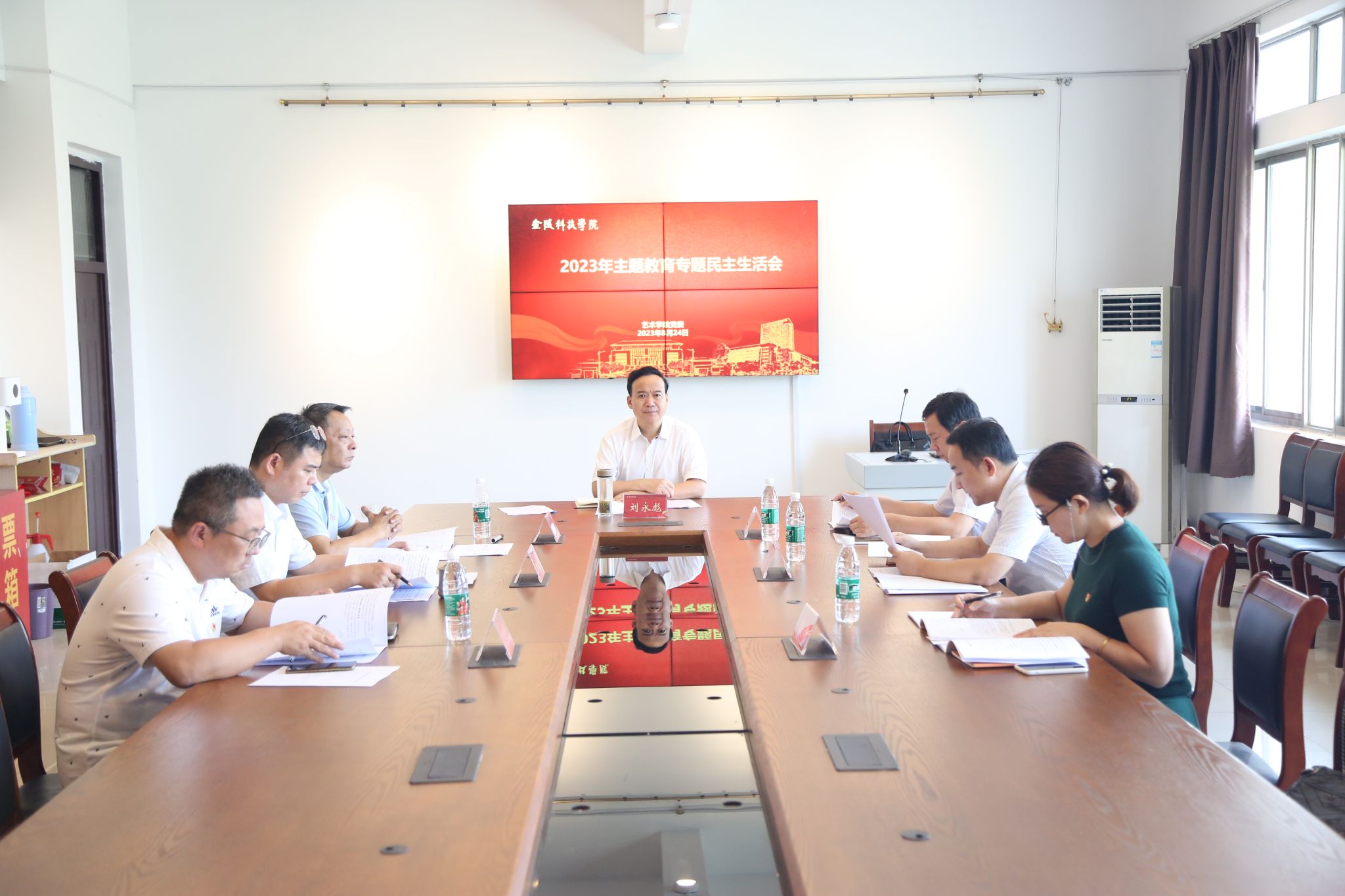 按照校党委《关于开好2023年度院(部)党员领导干部专题民主生活会的通知》精神要求, 8月24日下午, 艺术学院党委在6号楼6306会议室召开主题教育专题民主生活会。校党委督导组组长、校长刘永彪到会指导并作点评, 校党委督导组成员、校办主任庞海燕等参加会议。会议由艺术学院党委副书记鲍锐主持。