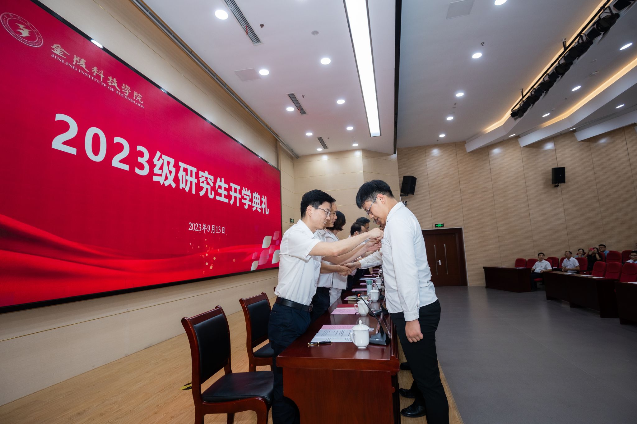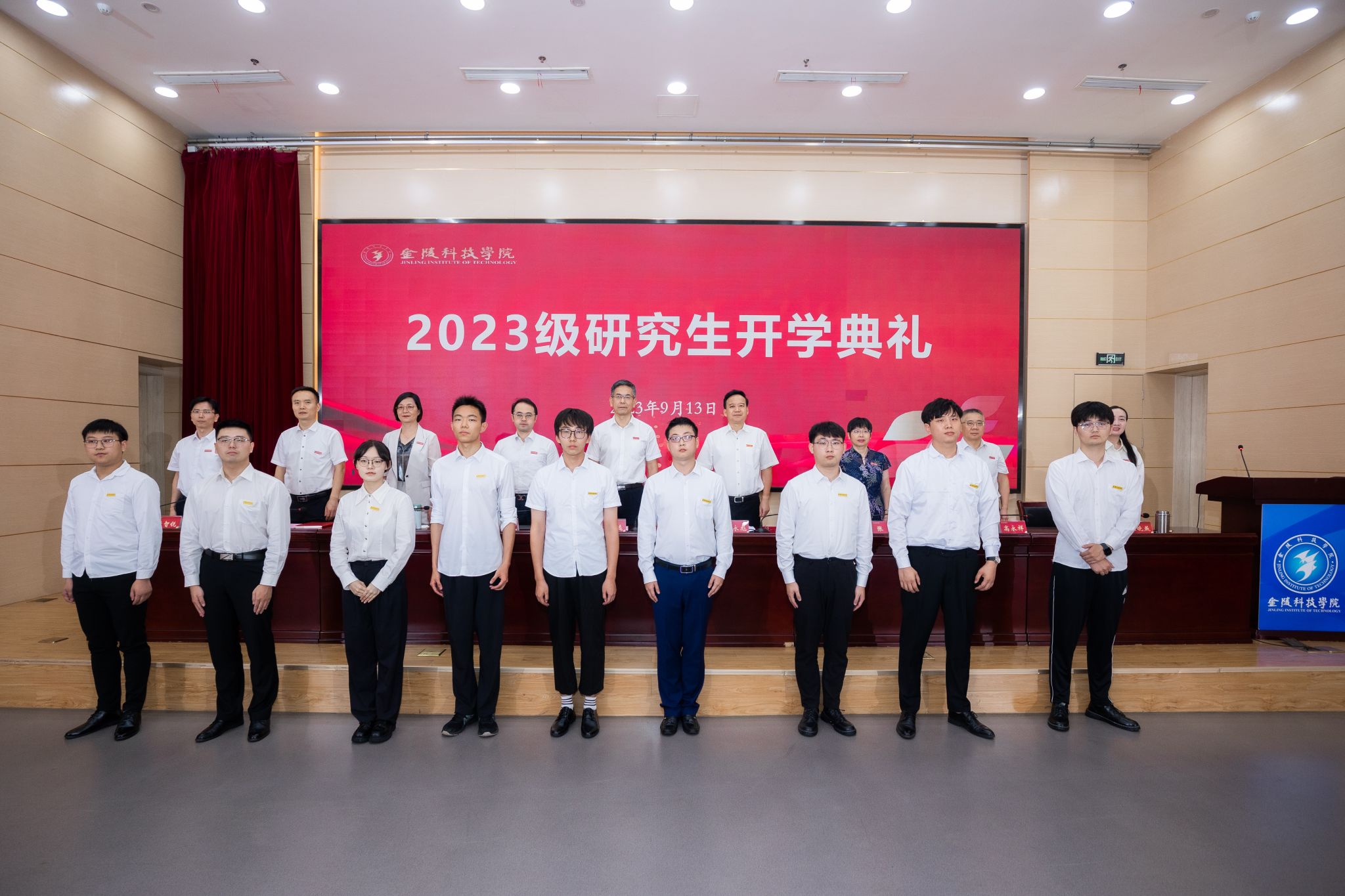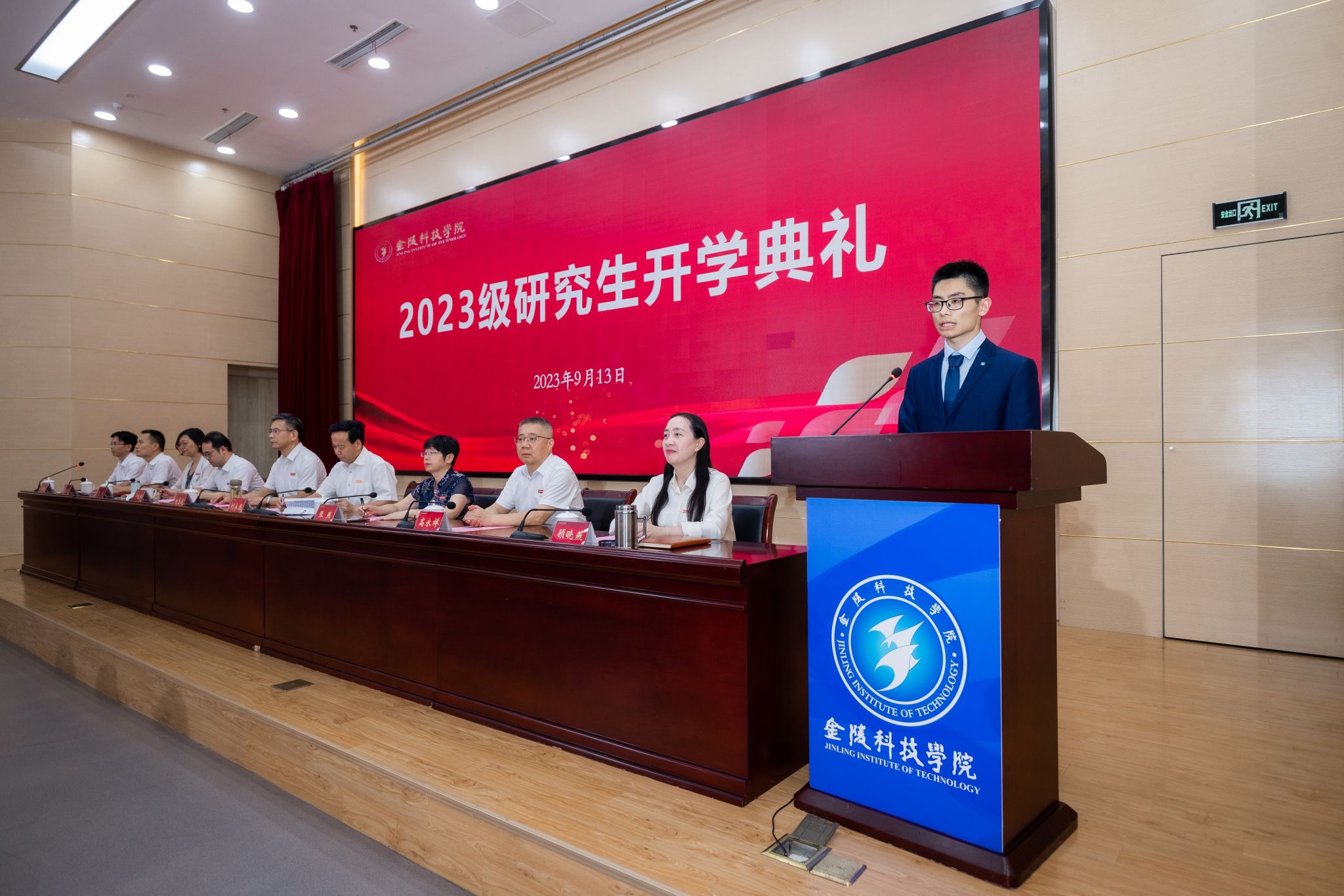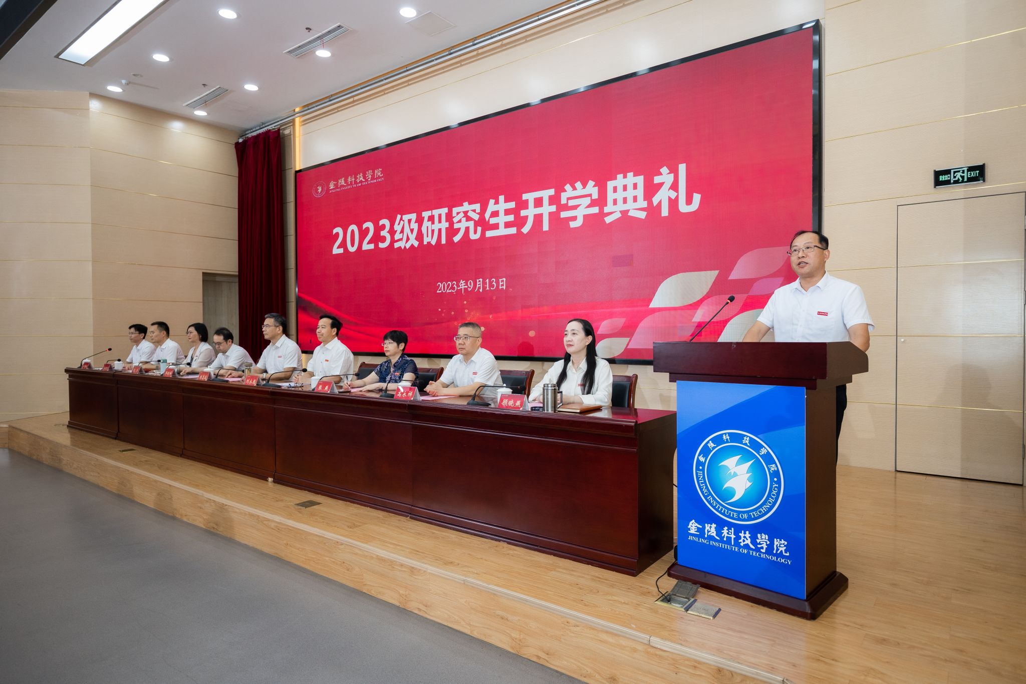 校长刘永彪代表学校对首届硕士研究生入学表示热烈欢迎,并以《守正创新,追求卓越,在逐梦路上追光前行》为题讲话。他回顾了建校以来的发展变化,讲述了金科人的奋斗故事,展望了金科院的美好未来。他对2023级研究生提出了四点希望:一是志存高远,勇立潮头,争做为国奉献的建设者。要将学术梦想根植于国家发展之需,将学术实践融入到祖国跨越式发展之中,把所学的知识转化为为国服务的贡献力。二是严谨治学,守正创新,争做科技强国的攀登者。要在学术研究的道路上,拓宽胸襟、放平心态,团结协作、埋头苦干,努力探求创新性解决问题的方法,提高原创性、系统性、引领性研究的能力。三是追求卓越,永不言弃,争做新时代的开拓者。要坚持善始善终,让自己的内心充满向上的力量,以不断开拓的勇气、奋进的锐气、立足平凡做出贡献的志气,在攻坚克难中一步步前行。四是感悟校史,勇于担当,争做经得起风雨的奋斗者。要善于从校史和优秀文化中汲取精神力量,抓住难得的建功立业的人生机遇,积极奋斗进取,努力成长为学校事业开拓前进的见证者、参与者和建设者。他鼓励同学们要在逐梦路上自觉自律、自信自强,厚植家国情怀、练就过硬本领、涵养进取品格,在科学研究道路上披荆斩棘、不懈攀登,书写无愧于时代的青春华章。