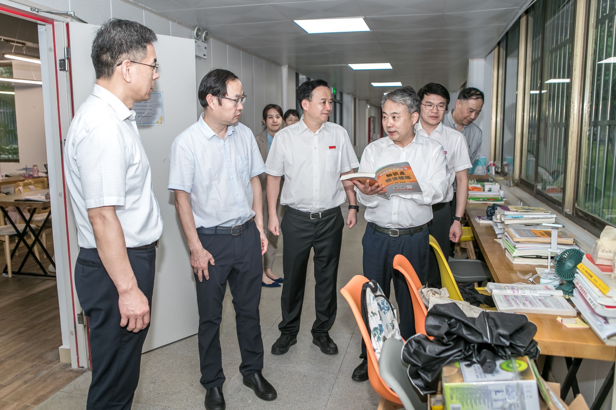 “一站式”学生社区是学生党建前沿阵地、“三全育人”实践园地、智慧服务创新基地、平安校园样板高地。陈勇在这里调研了学思图书屋、学生心理健康工作室、辅导员谈心谈话室、退役大学生事务工作站。