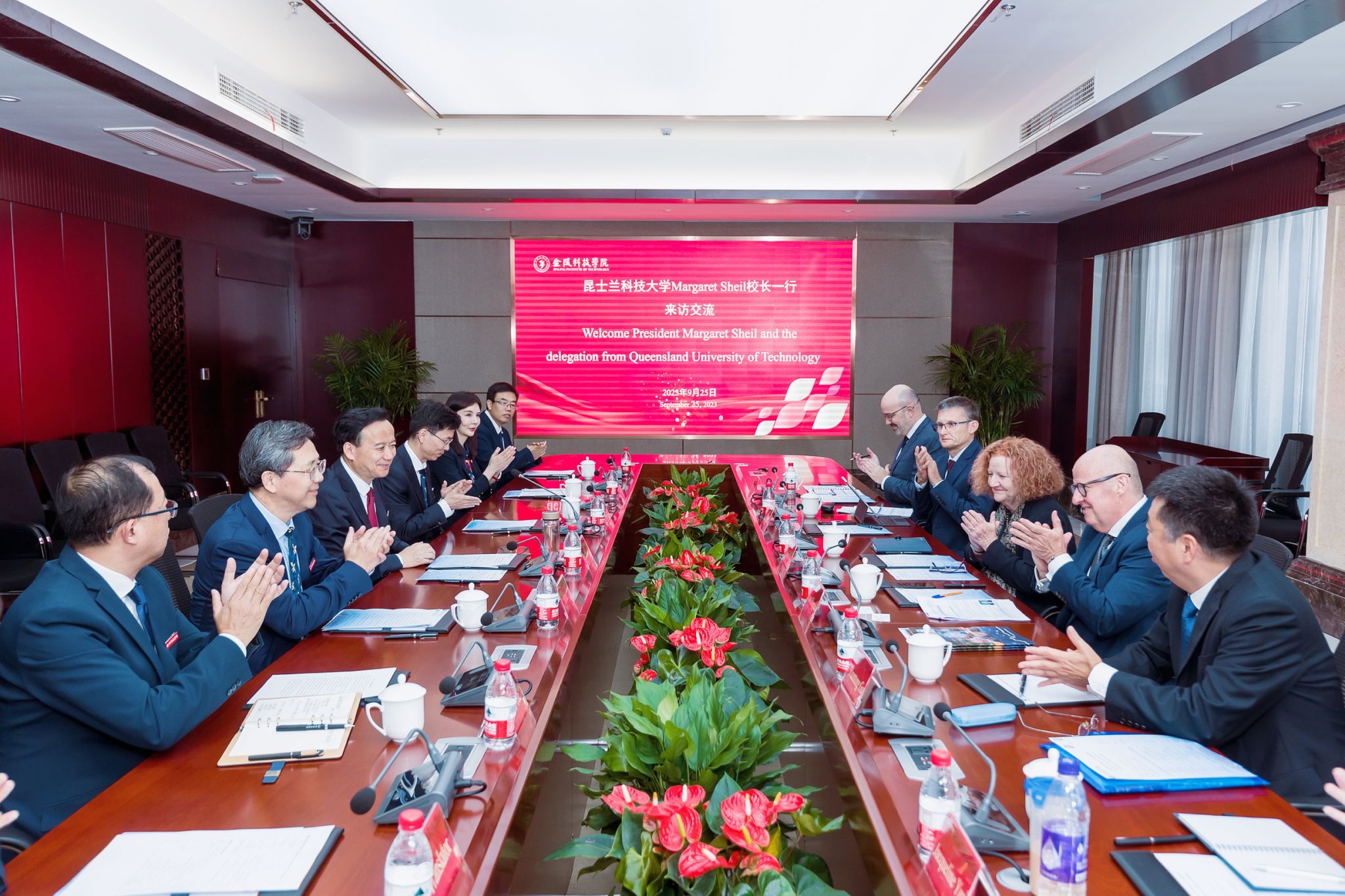 会上,刘永彪对Margaret Sheil一行的来访表示热烈欢迎,并介绍了学校基本情况。他表示,kaiyun官网高度重视对外交流与合作,积极借鉴国外优质高校先进办学理念,不断提升教育对外开放水平。kaiyun官网与昆士兰科技大学二十余年的合作取得了很多积极成果,本次Margaret Sheil一行的来访让两校合作更上新台阶。他希望未来两校在继续深耕中外合作办学项目的同时,进一步深化人才培养、教师互访、学术交流等领域的务实合作,一同搭建高水平、高质量、高层次的国际合作平台。