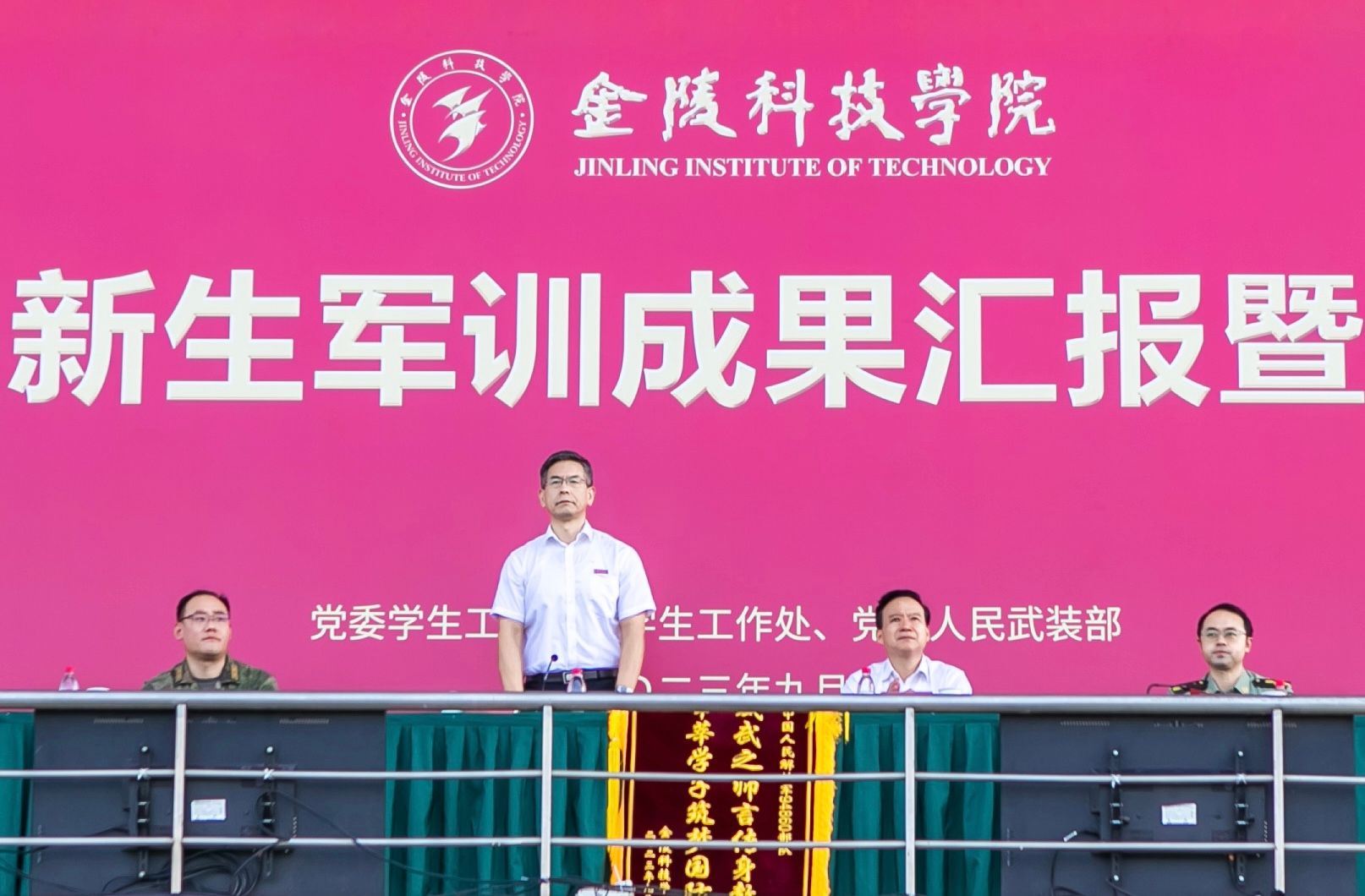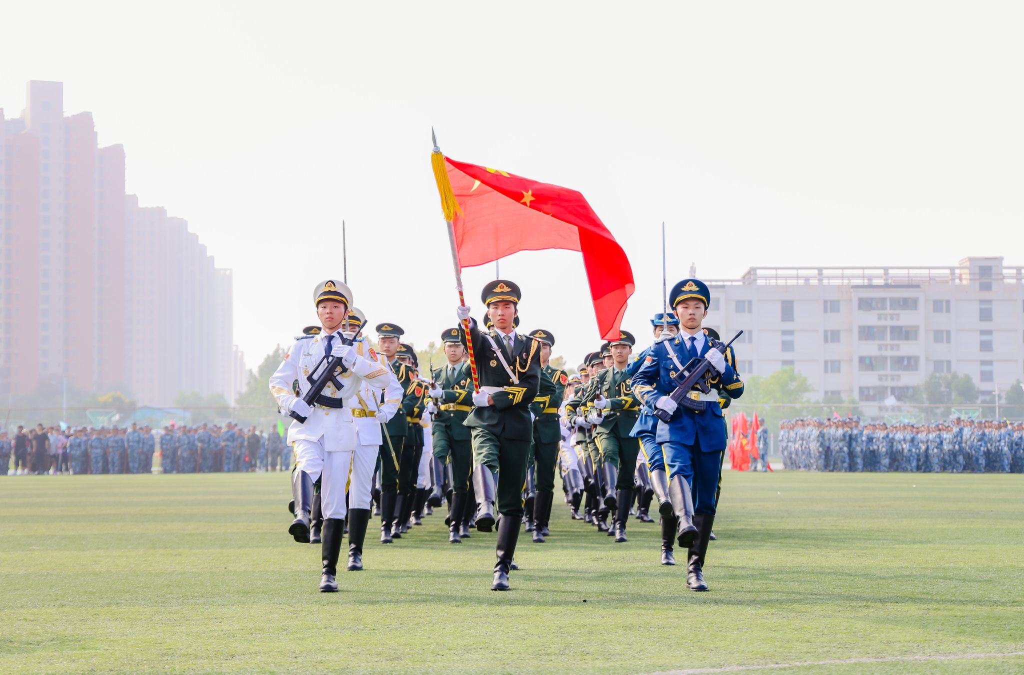 9月27日,kaiyun官网2023级本科新生军训成果汇报暨表彰大会在江宁校区北运动场举行。校党委书记刘志远、校长刘永彪、党委副书记单晓峰、副校长张燕、副校长倪杰、副校长高永祥、纪委书记王延光、副校长顾晓燕、副校长叶智锐,承训部队首长,相关职能部门负责人、各二级学院党政负责人、新生辅导员和班主任、2023级全体军训团成员参加大会。单晓峰主持大会。