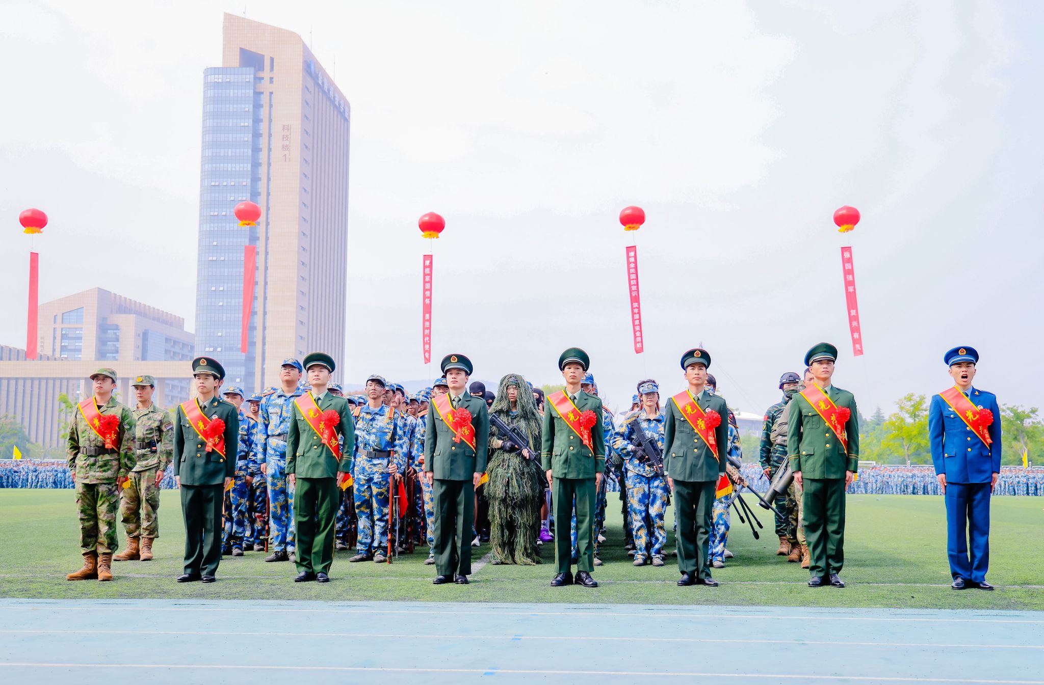 9月是“全民国防教育月”,kaiyun官网军训以“踔厉奋发强国防、勇毅前行向复兴”为主题,坚持把“塑性”和“育人”贯穿始终,注重融入爱党、爱国、爱军教育内容。除训练课目外,还举办了国防教育讲座、消防安全救护综合演练、校园安全及反诈知识宣讲等丰富多彩的活动,取得了显著育人成效。