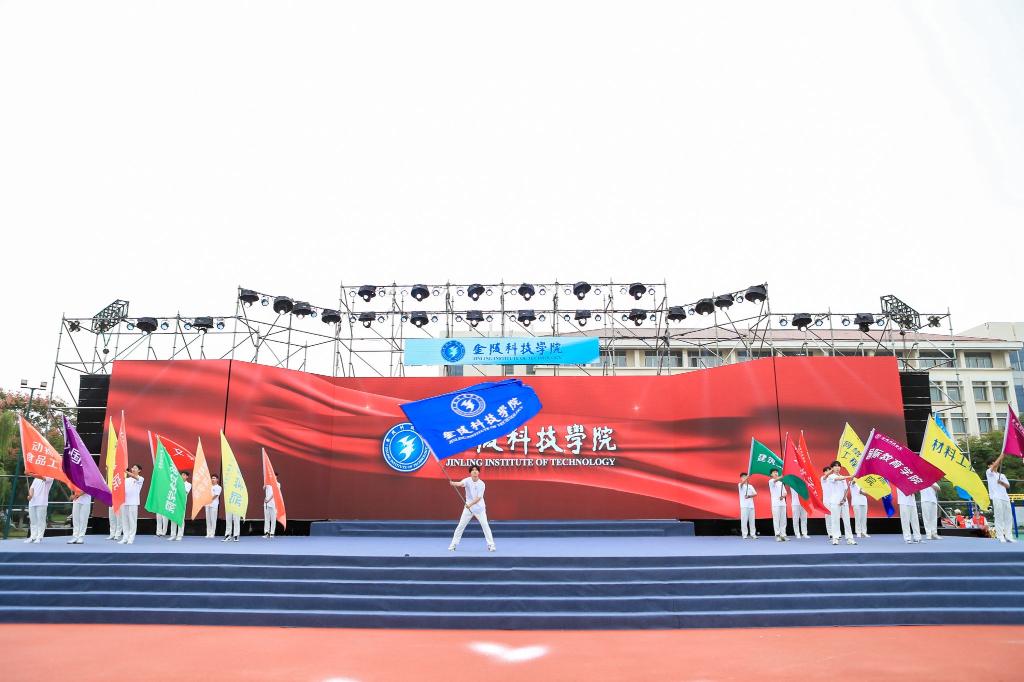 18个学院院旗和金科院校旗在全场舞动