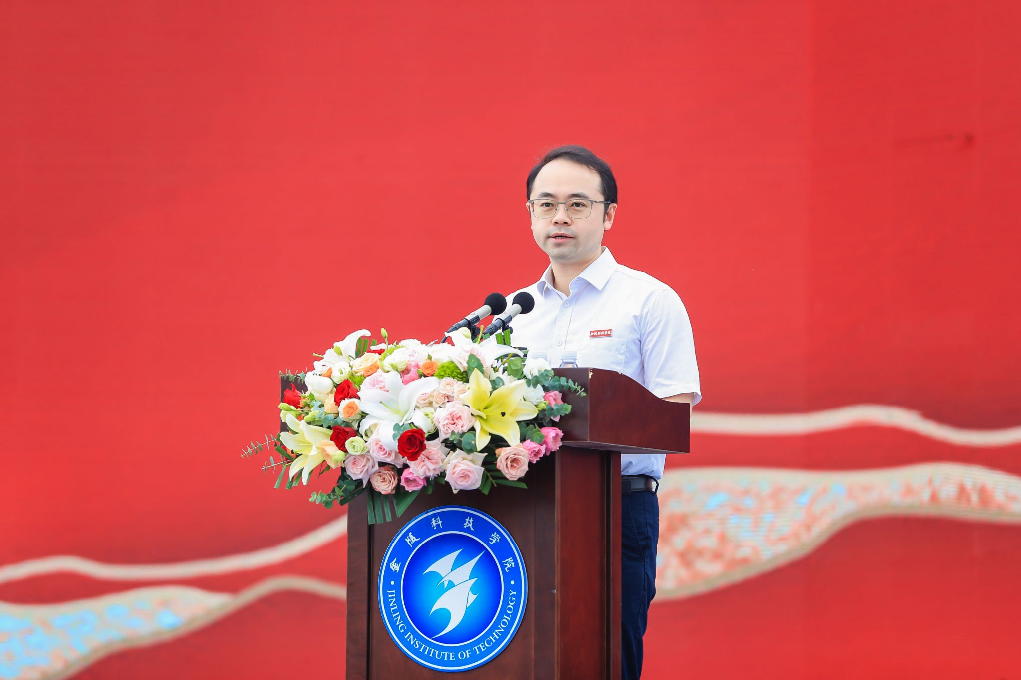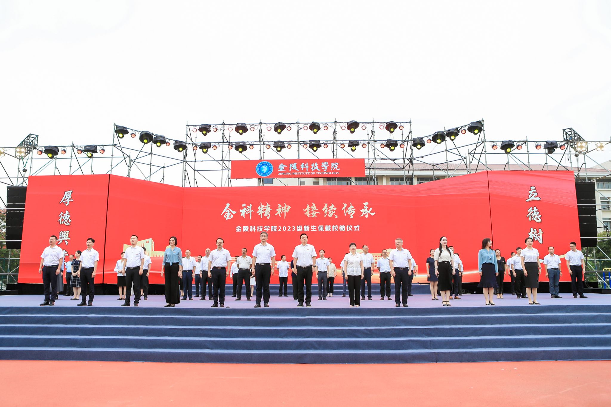 活动现场,全体校领导、相关部门负责人、各二级学院书记、院长为新生代表佩戴校徽。伴随着歌声,校旗在新生中传递,寓意着奋斗新征程的金科精神在一代又一代金科学子手中接续相传、生生不息。