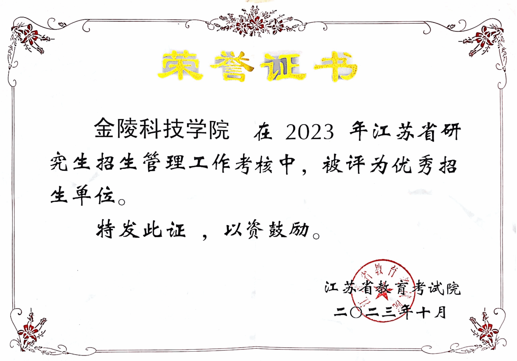 10月24日,江苏省教育考试院发布《关于公布2023年江苏省研究生考试招生管理工作考核结果的通知》,kaiyun官网获评优秀招生单位。