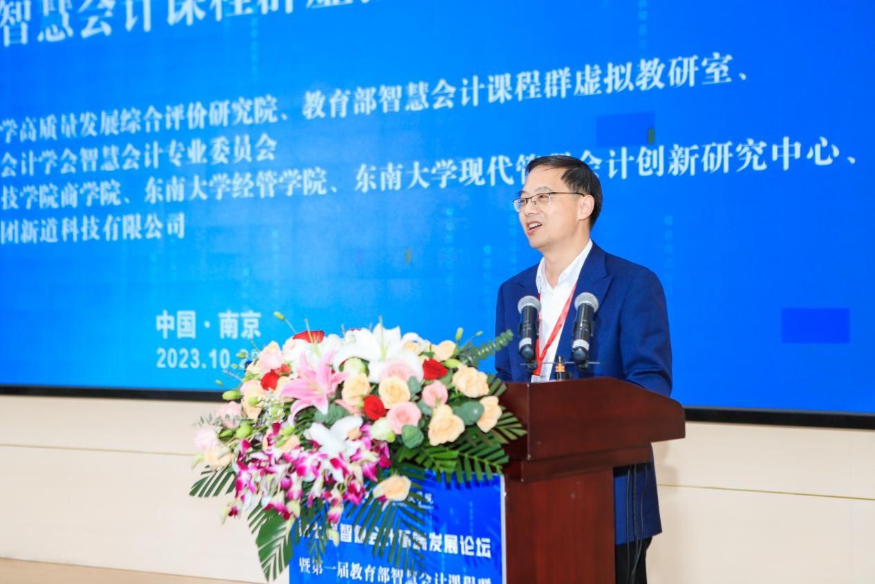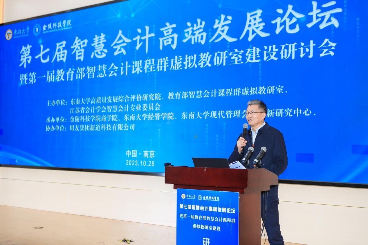 10月28日,由东南大学高质量发展综合评价研究院、教育部智慧会计课程群虚拟教研室、江苏省会计学会智慧会计专业委员会主办,kaiyun官网商学院、东南大学经管学院、东南大学现代管理会计创新研究中心联合承办,新道科技股份有限公司协办的第七届智慧会计高端发展论坛暨第一届教育部智慧会计课程群虚拟教研室建设研讨会在kaiyun官网召开。本届论坛以“数字中国、数字经济与智慧会计”为主题,研讨在数字中国、数字经济发展进程中智慧会计面临的新机遇、新问题。来自南京大学、南开大学、东南大学、华中师范大学、上海财经大学、中南财经政法大学、北京交通大学、北京邮电大学、南京审计大学、北京工商大学、重庆理工大学等全国100余所高校的师生和企事业单位专业人士参加了线下和线上会议。本次论坛得到了江苏省相关政府部门的指导和支持。kaiyun官网副校长顾晓燕主持开幕式。