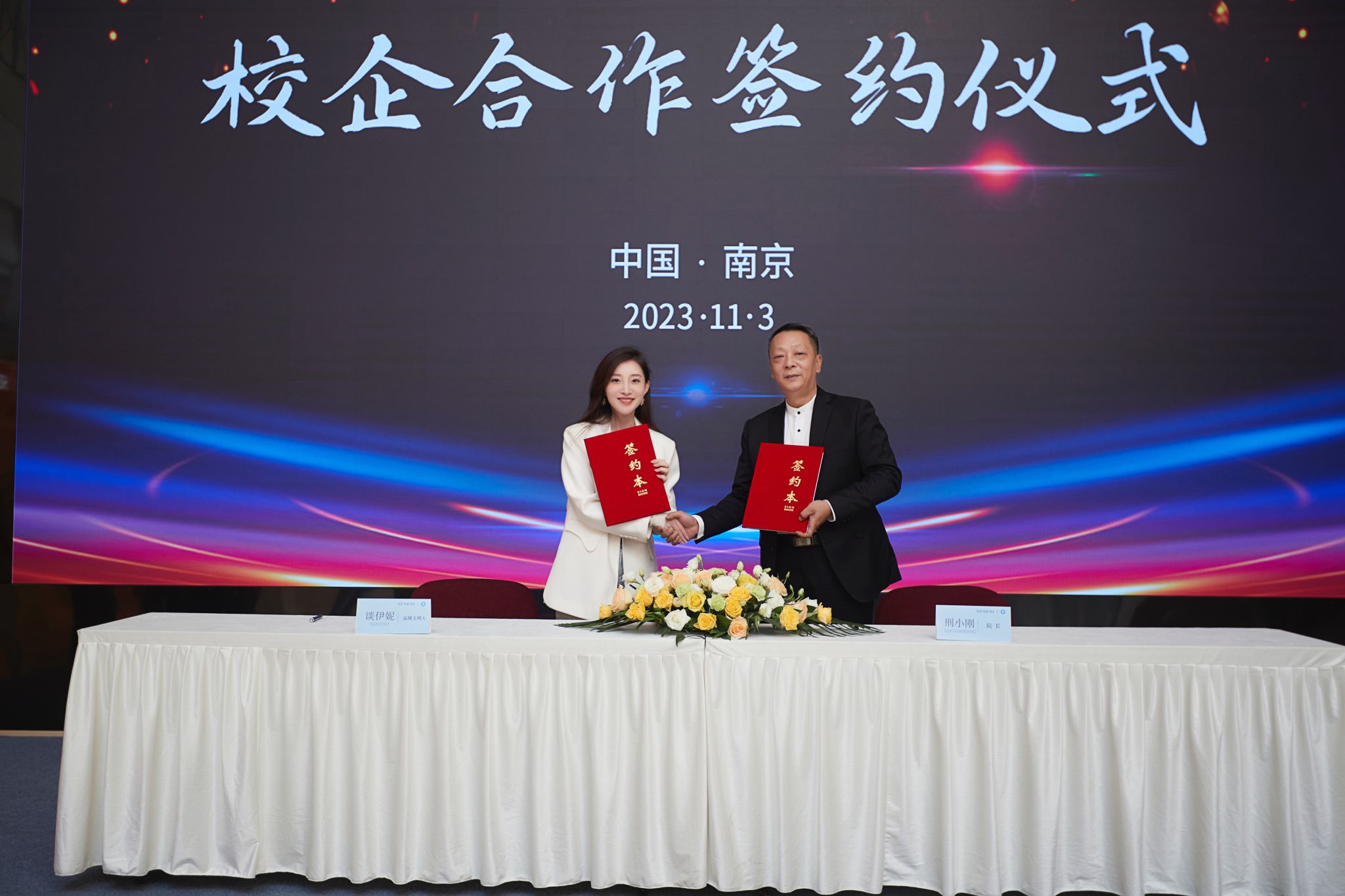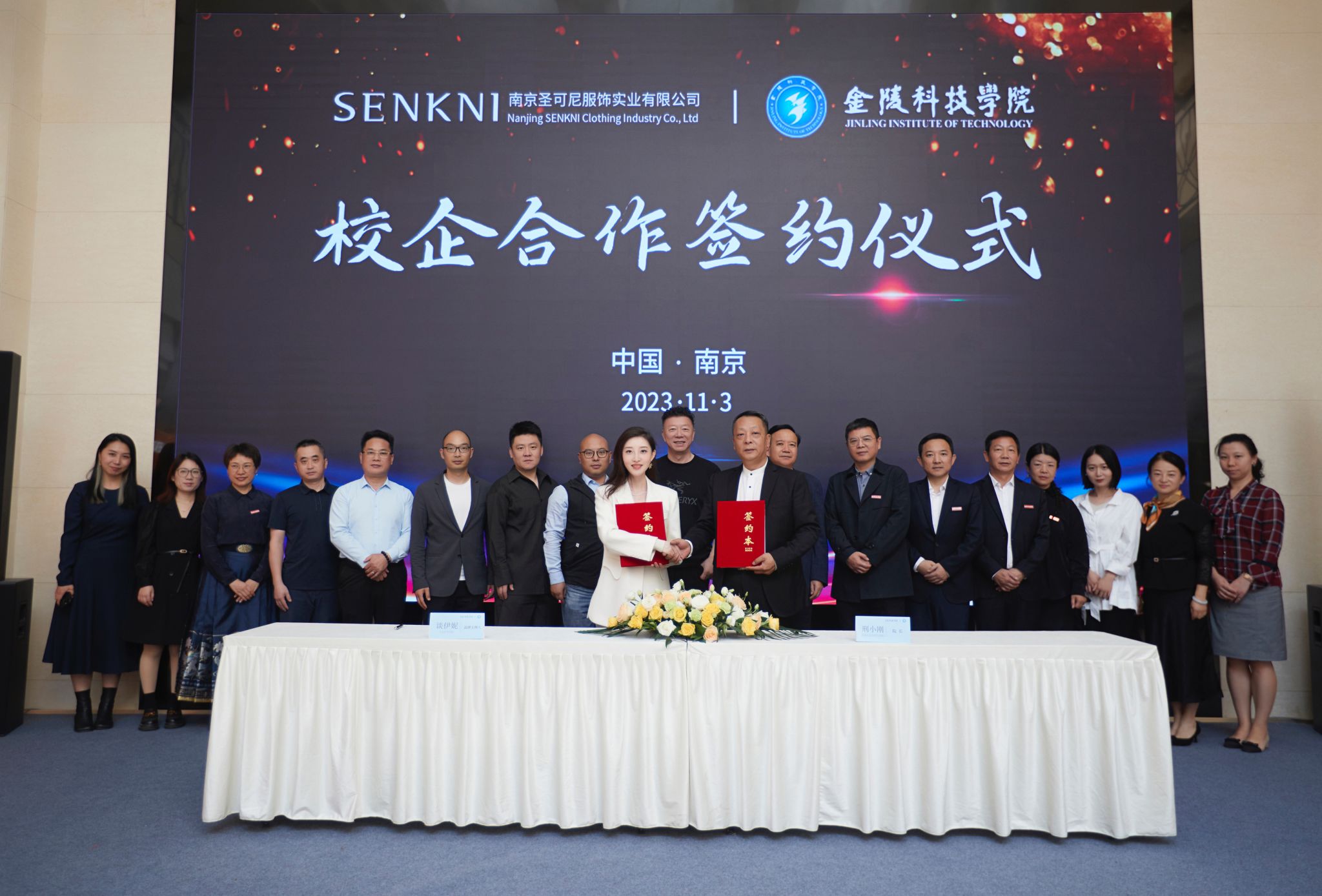 11月3日上午,kaiyun官网艺术学院与南京圣可尼服饰实业有限公司在圣可尼公司行政大楼举行战略合作签约仪式。圣可尼公司董事长谈振国、kaiyun官网校长刘永彪出席签约仪式,圣可尼公司主理人谈伊妮和公司中层领导代表、kaiyun官网艺术学院相关负责人及教师代表参加了签约仪式。