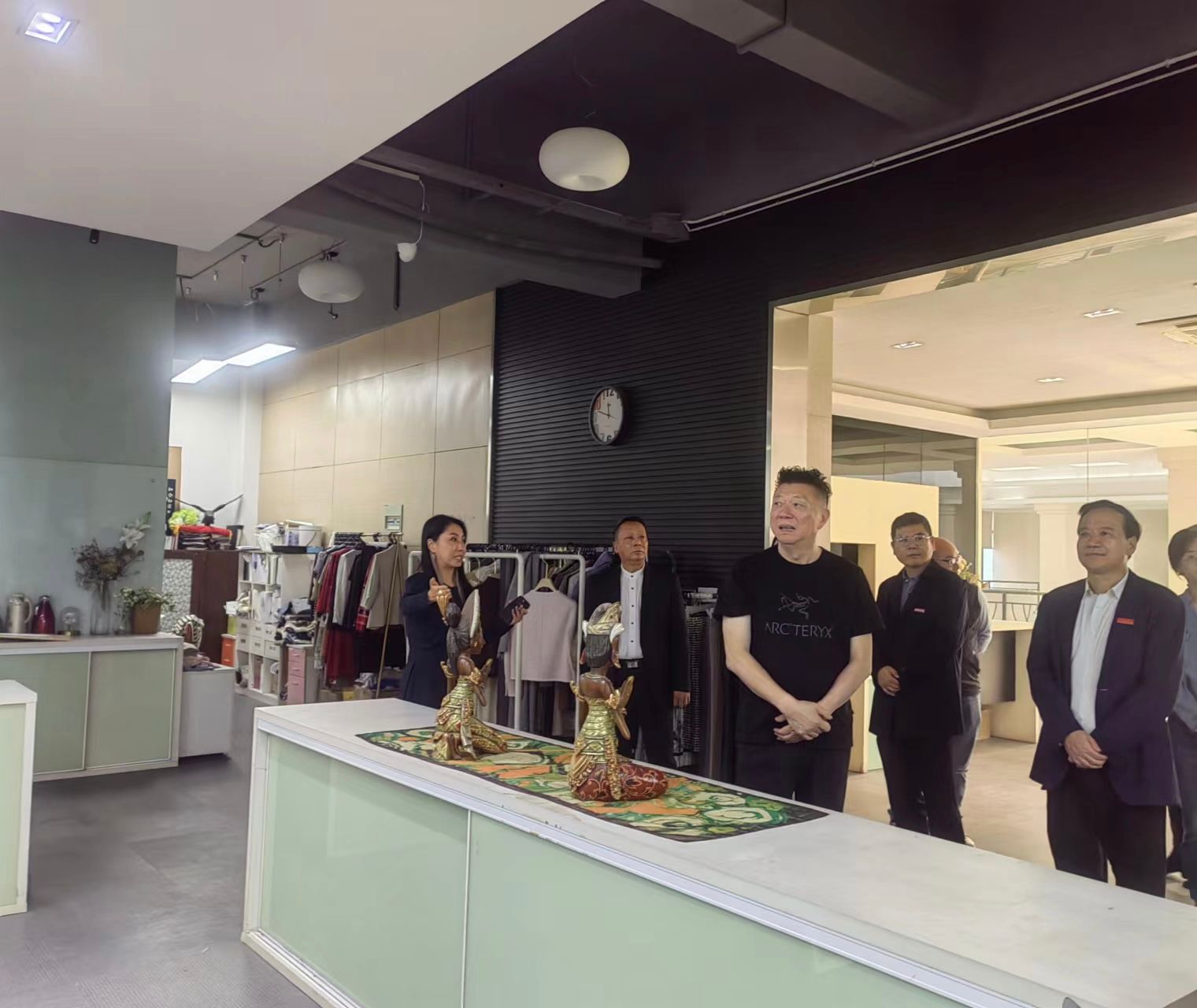 谈伊妮、邢晓刚代表双方签订战略合作协议,双方将在教育教学、实训实践、就业创业等方面开展长期合作。签约仪式结束后,谈振国陪同刘永彪一行参观了圣可尼公司的零售部、设计部、加工部、样板间等部门。