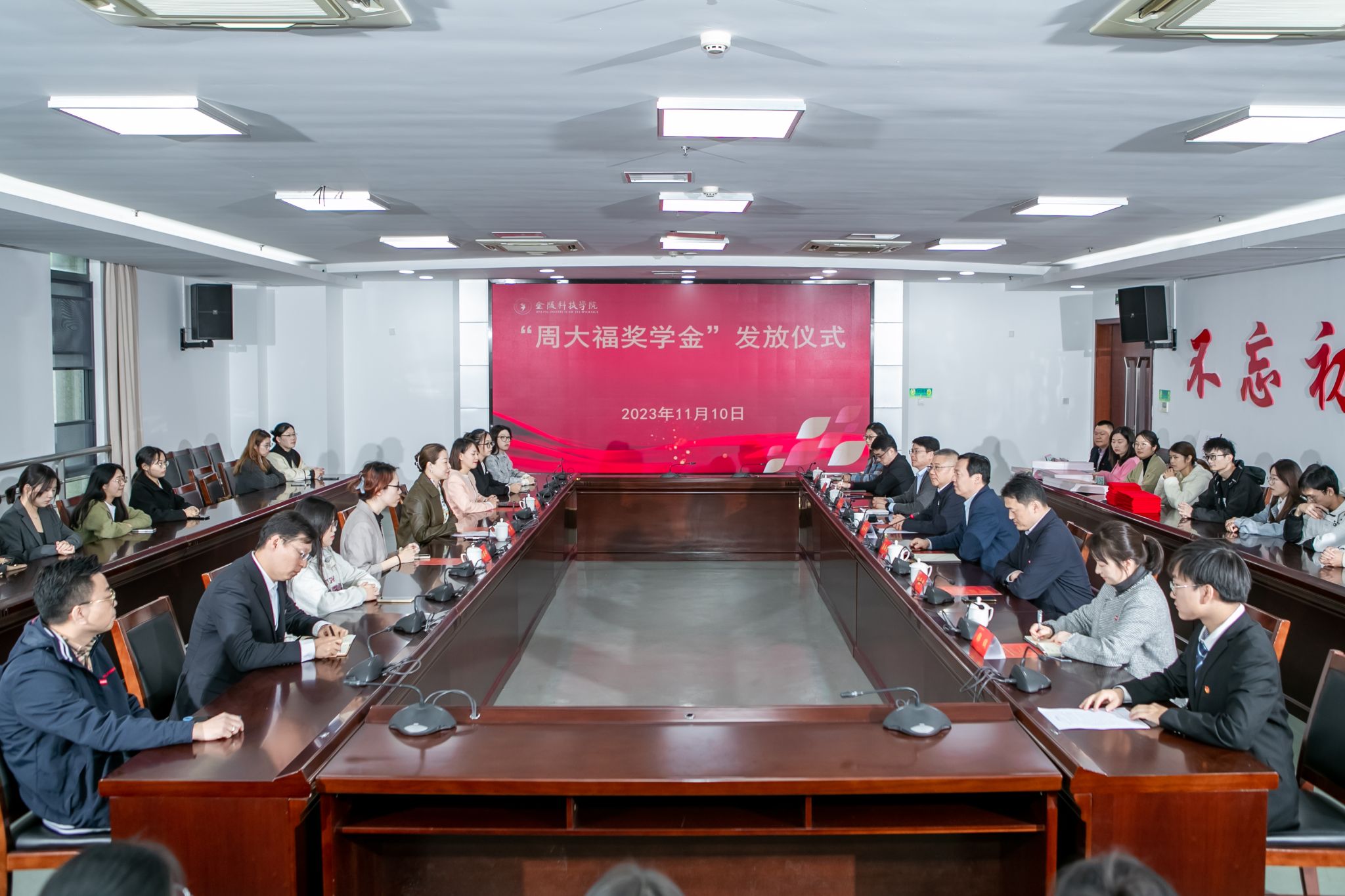 孙媛对kaiyun官网近年来取得的成绩表示赞许,对获得奖学金的同学表示祝贺,并介绍了周大福珠宝集团有限公司的发展历程、业务内容、公司文化、校企合作等情况。她表示,公司长期重视企业的社会责任,通过捐资助学等公益活动积极回馈社会,促进教育事业发展。她希望双方在人才培养、产学研合作、科技创新等方面进一步深化合作,携手共进。她热忱欢迎学校广大师生到公司参观交流,在深化产教融合校企合作等方面进一步加强合作,共促事业高质量发展。