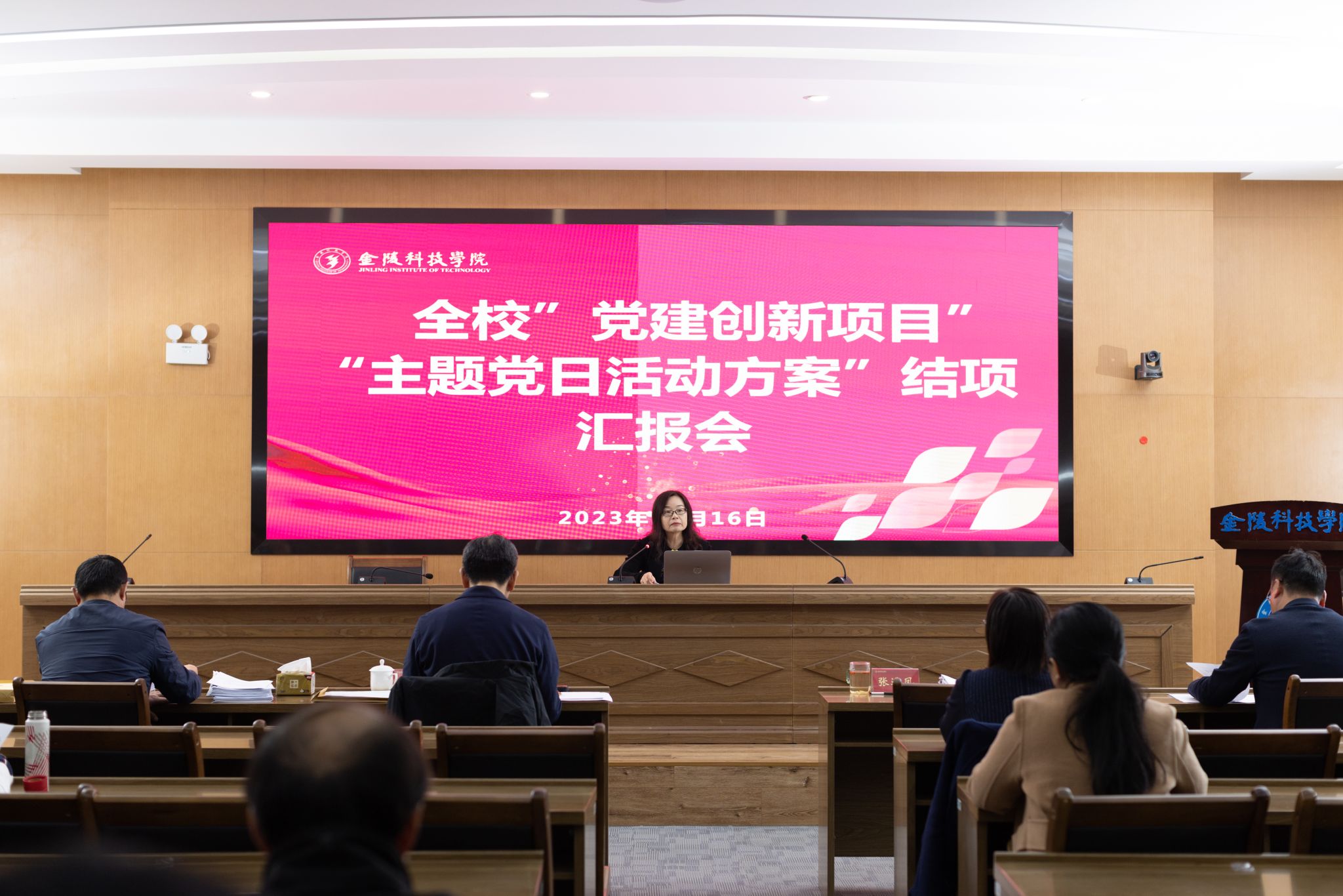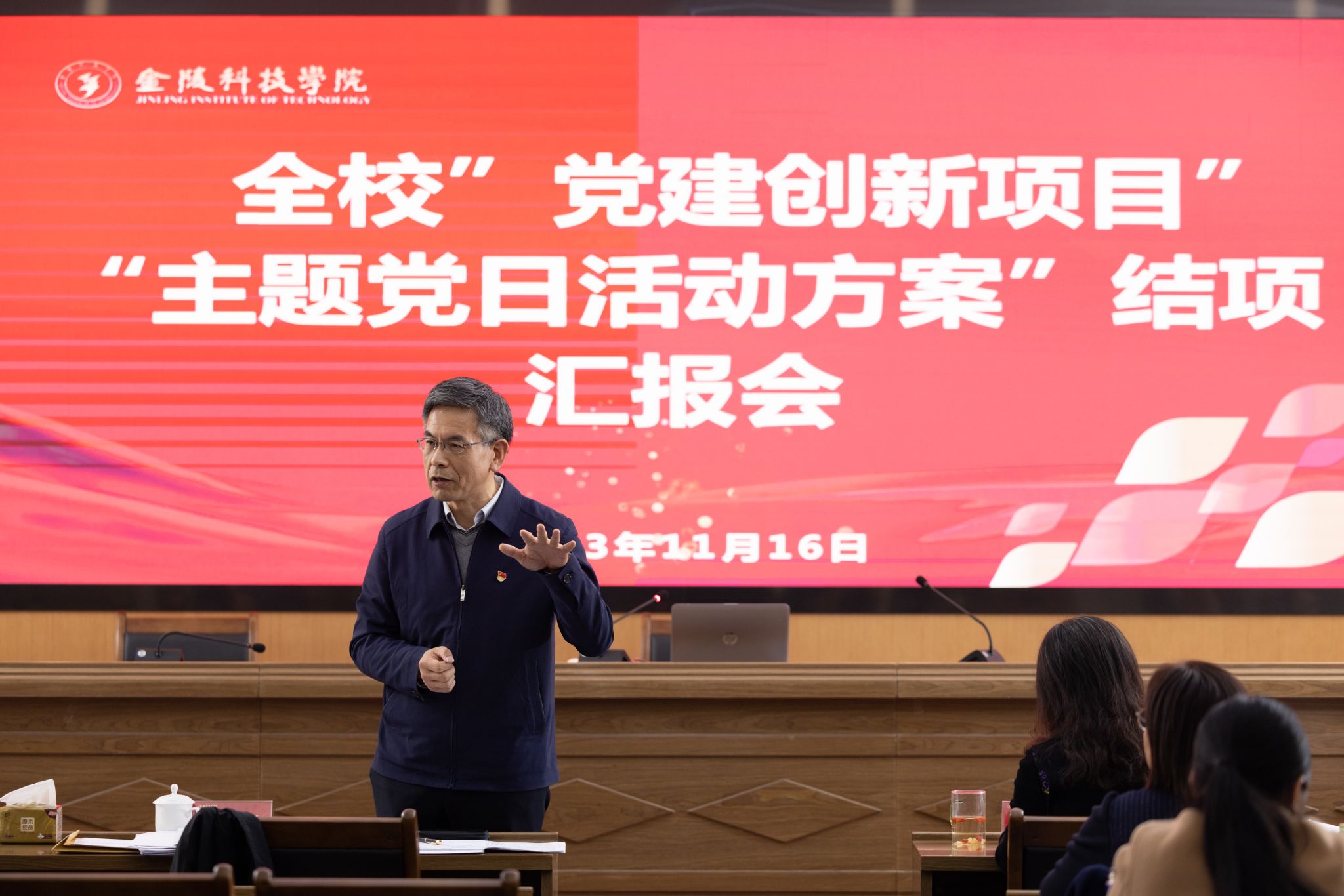 11月16日下午,kaiyun官网在行政楼报告厅举办2023年度“党建工作创新项目”“主题党日活动方案”结项汇报会,校党委书记刘志远出席会议并讲话,党委办公室、党委组织部、党委宣传部、党委学生工作部、党委保卫部等职能部门负责人和各项目负责人参加会议。会议由校党委常委、党委组织部部长张远凤主持。