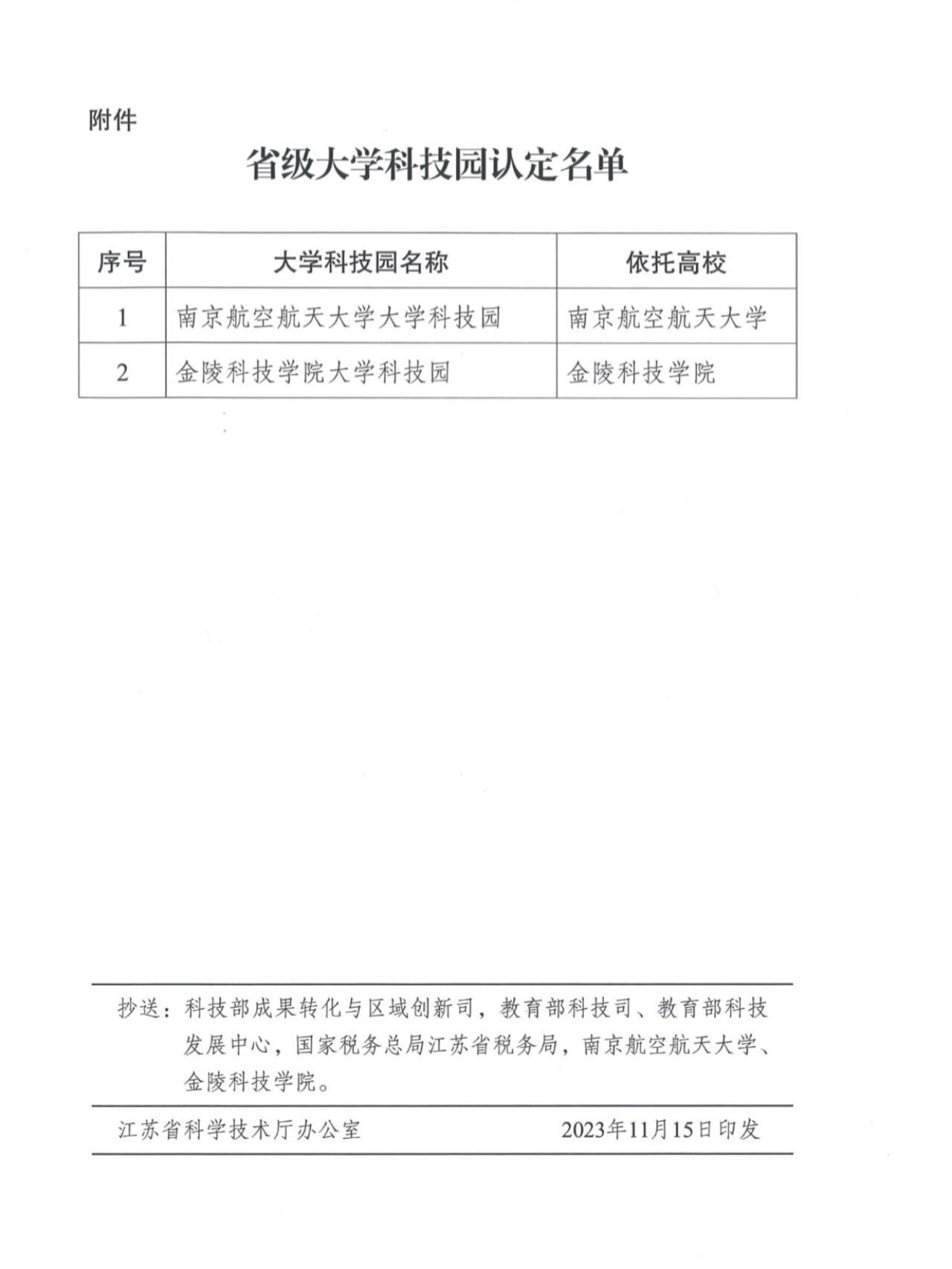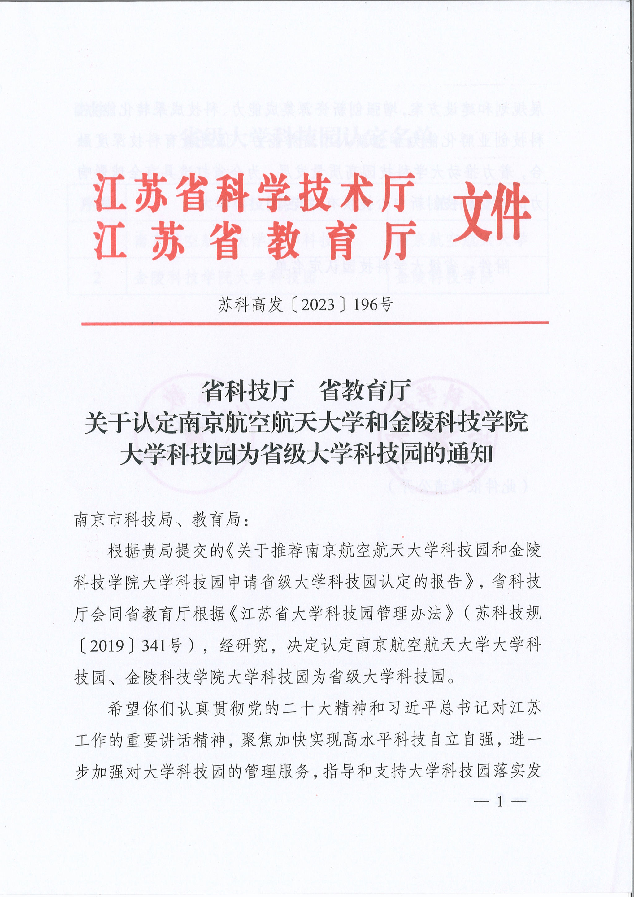 近日,江苏省科学技术厅、江苏省教育厅联合印发《省科技厅省教育厅关于认定南京航空航天大学和kaiyun登录中国入口登录大学科技园为省级大学科技园的通知》,经属地(区)审查,市科技局、教育局推荐,现场质询答辩、专家组评审,省科技厅、教育厅审议、公示等环节,认定kaiyun官网大学科技园为省级大学科技园。