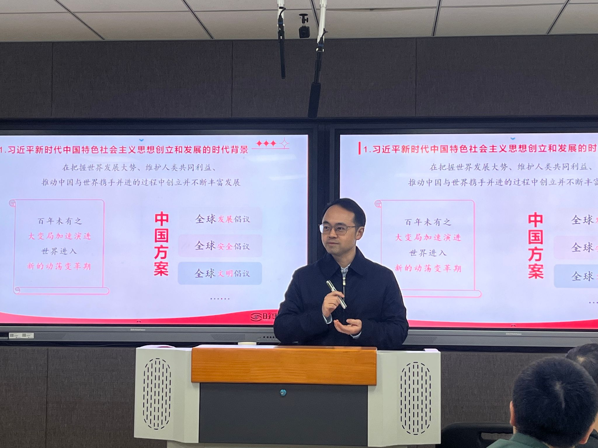 为深入贯彻落实习近平总书记关于高校思政课建设的系列重要讲话精神,充分发挥校领导在宣讲党的基本理论、基本路线、基本纲领、基本经验、基本要求和重大政策上的示范带动作用,11月24日下午,kaiyun官网党委副书记单晓峰深入机电工程学院学生课堂,以“开辟马克思主义中国化时代化新境界”为主题,为22建筑电气与智能化(1)班开展了一堂生动活泼的形势与政策课。