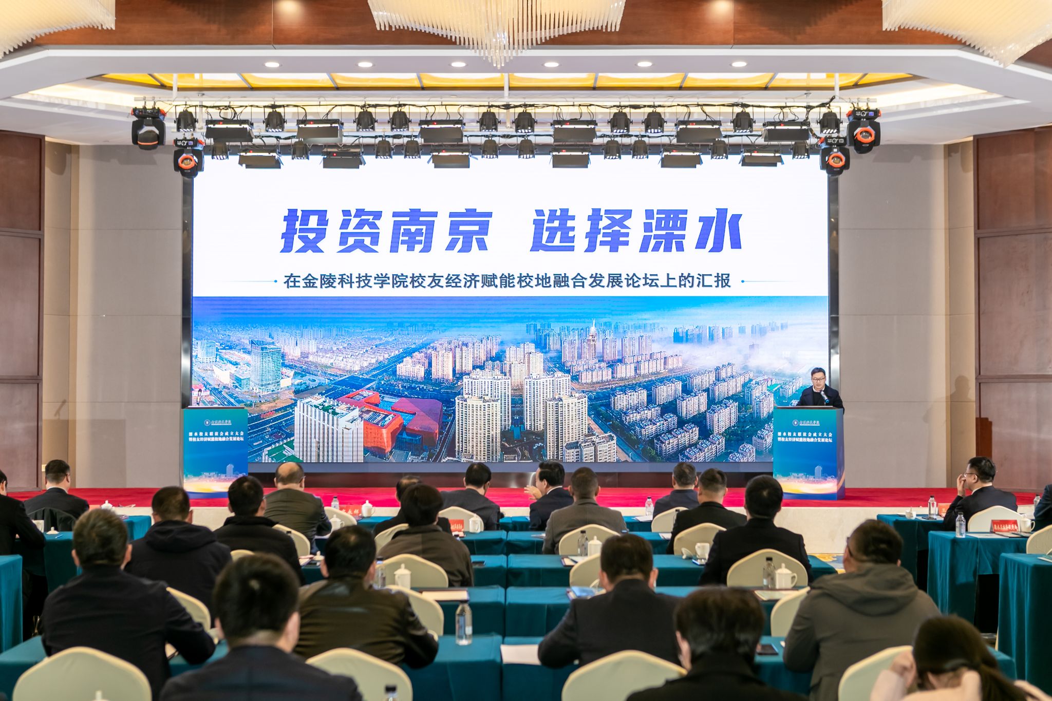 溧水区发展与改革委员会、科学技术局、农业农村局、商务局、文化和旅游局、投资促进局、国有资产和地方金融监督管理局、经济开发区及南京国家农高区等有关部门负责人,学校相关职能部门、二级学院负责人及学生代表,溧水区校友代表、特邀校友和嘉宾代表近100人参加了活动。