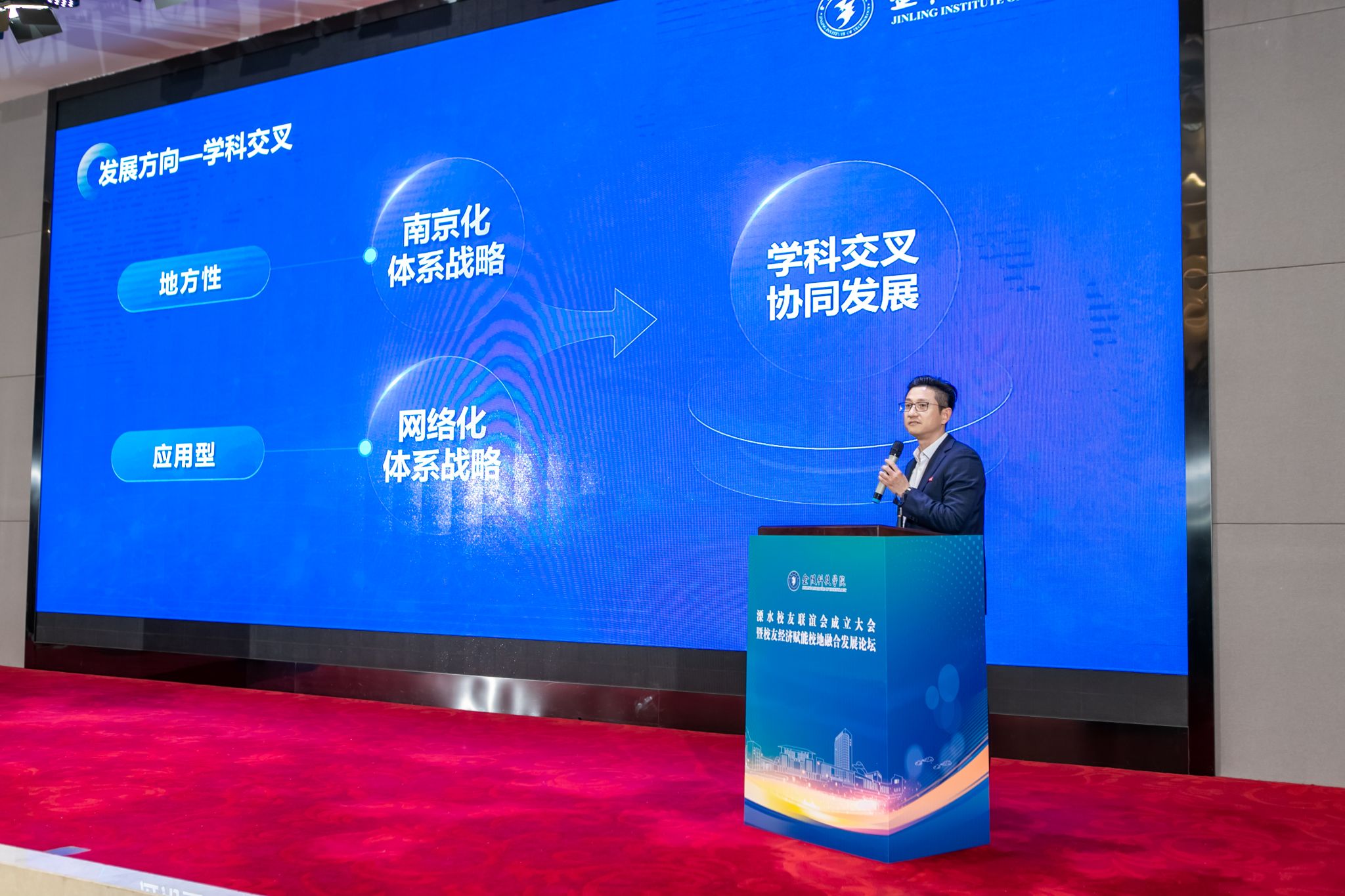 刘永彪在论坛讲话中介绍了kaiyun官网“地方性、应用型”办学定位,“政校城、行教企”融合发展优势,以及取得的科技创新成果和服务社会成效。他指出,校友经济不仅有助于推动经济发展,还有助于促进社会和谐,是地方和高校共同的战略资源、宝贵财富。溧水地理位置优越、交通便利,自然资源丰富、文化底蕴深厚,有巨大的发展潜力和竞争优势,也为广大校友提供了更好的投资环境和就业创业机会。他强调,溧水校友以及在宁校友企业要共商合作大计,共谋发展良策,充分发挥校友的行业、资源优势,加强区域、高校和校友之间的交流合作,凝聚金科校友力量助推“校友经济”赋能校地融合高质量发展。