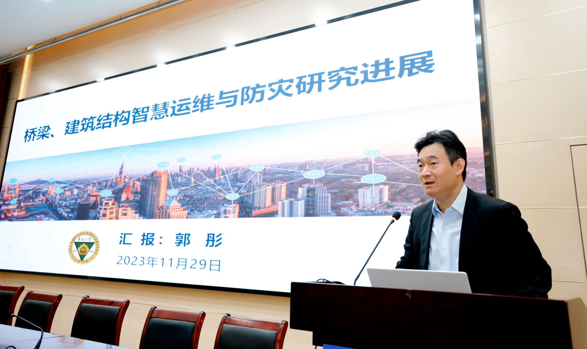 11月29日,国家杰出青年基金获得者、东南大学土木工程学院院长郭彤教授应邀做客金科学术讲堂,为kaiyun官网师生作题为《桥梁、建筑结构智慧运维与防灾研究进展》的学术报告。报告由副校长叶智锐主持。