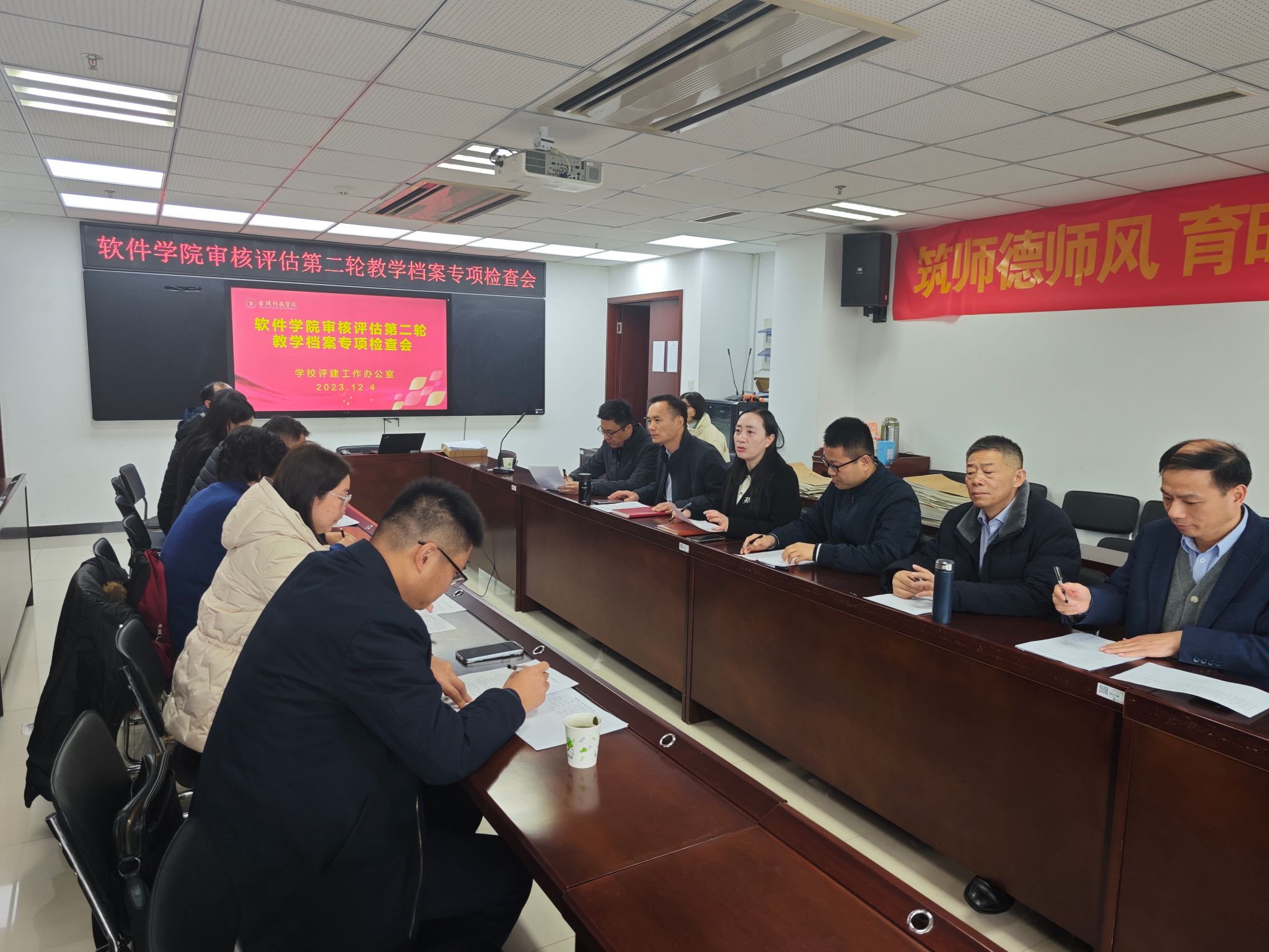 12月4日至5日,学校评建工作办公室组织校内评估专家,分五个大组对商学院等19个学院(部)教学档案(课程试卷)进行了专项检查。校纪委书记王延光、副校长顾晓燕参加专项检查并讲话。