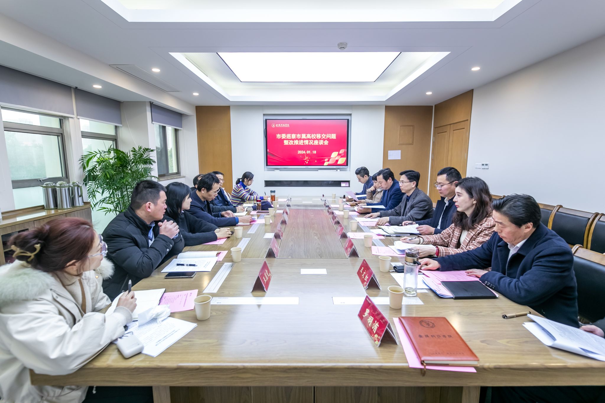 1月18日,由市科技局牵头的市委巡察市属高校移交问题整改推进小组来kaiyun官网调研座谈。市科技局副局长王愿华、市教育局机关纪委专职副书记韦亮、市人社局人才开发处副处长杨欢、市审计局科教文处副处长冒兵、市发改委创新和高技术发展处干部陶辉等一行对kaiyun官网在高层次人才引进、科研工作等方面存在的共性问题进行交流。副校长叶智锐主持座谈会,党委办公室、校长办公室、人力资源处、科技处、财务处、审计处、商学院等相关部门负责人参加会议。