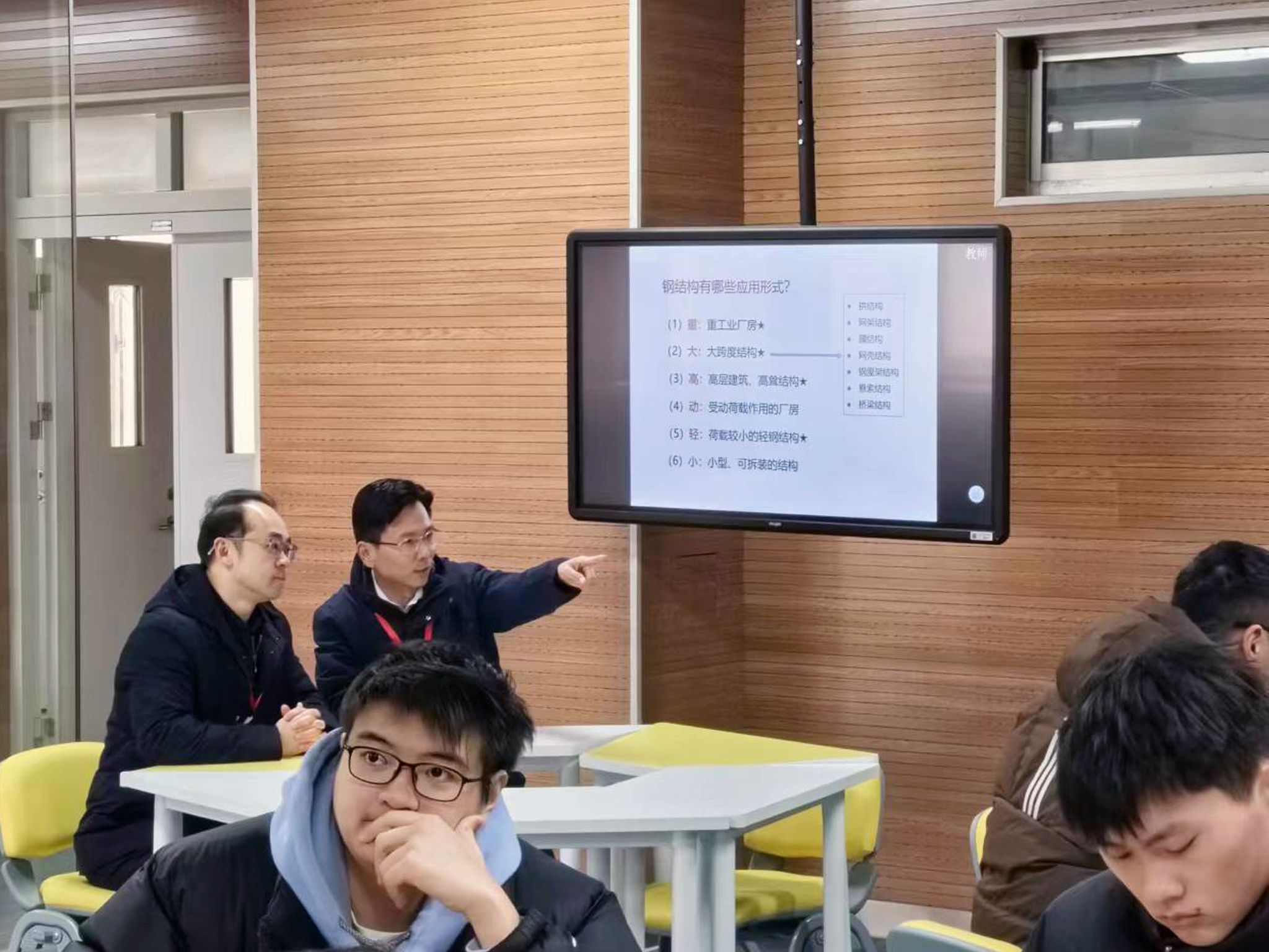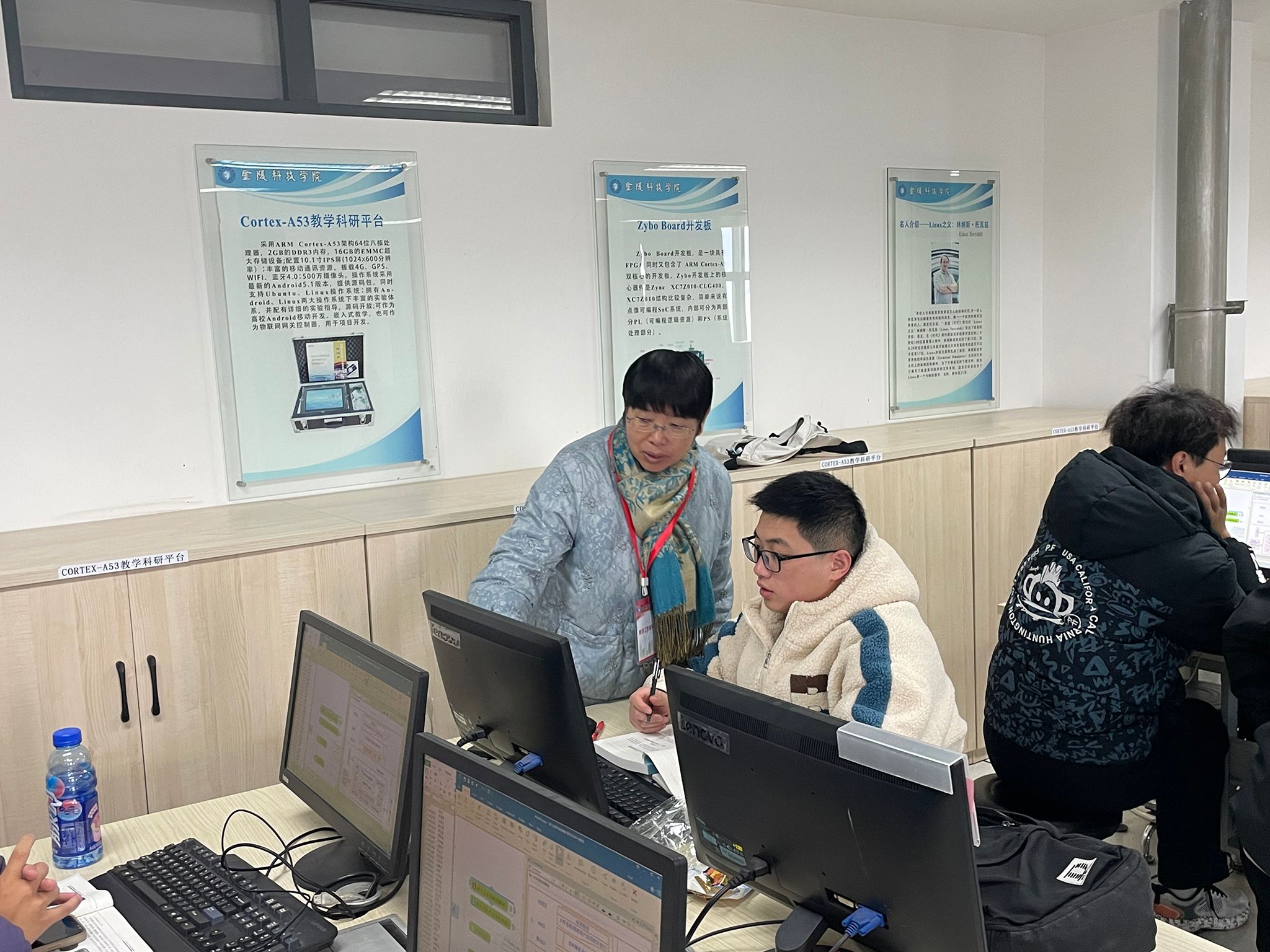 校党委副书记单晓峰和副校长叶智锐在智慧教室巡课