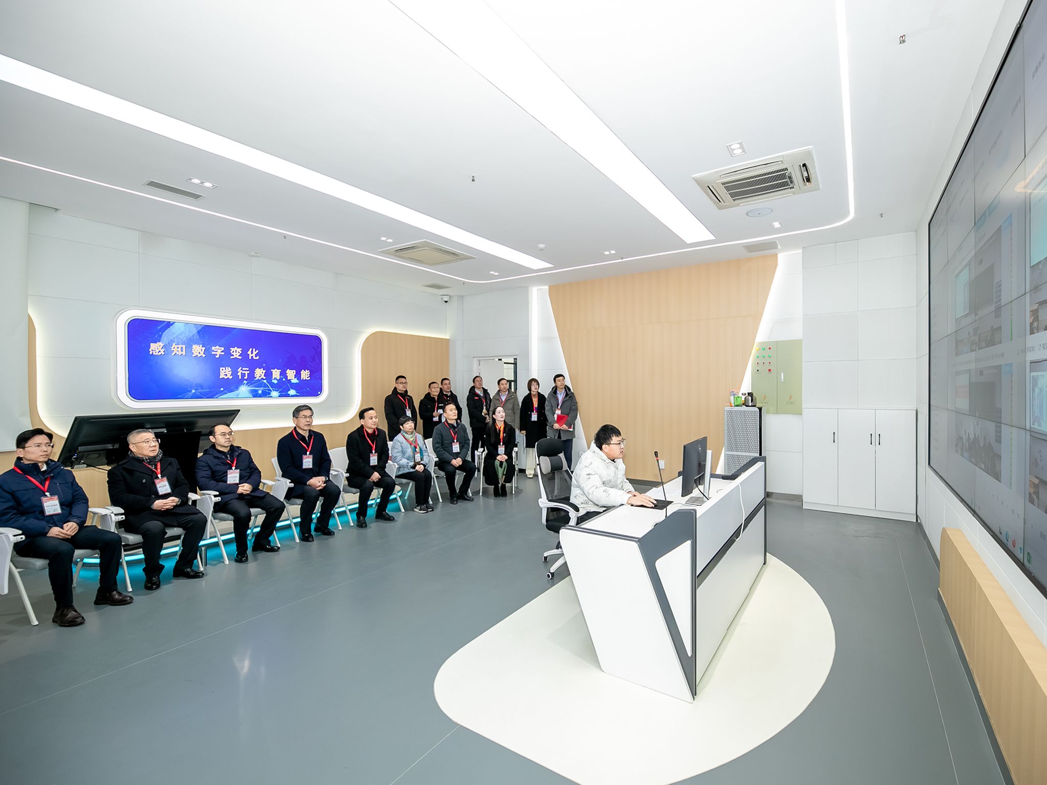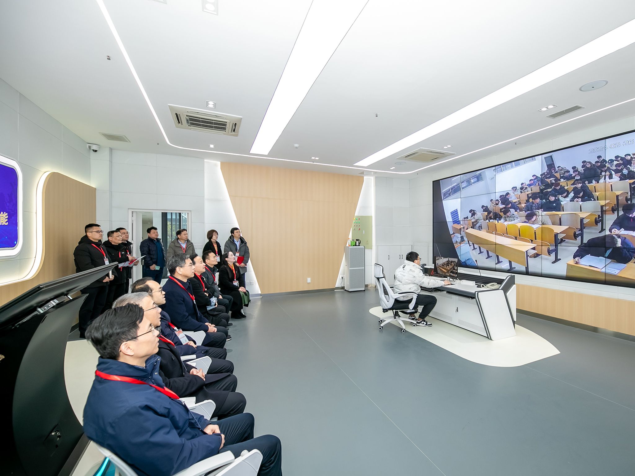 上午8:40,全体校领导前往科技楼1号楼深度教学及管理中心,通过可视化平台在线巡查全校课堂教学运行情况。在控制室大屏幕前,校领导们仔细观看各教室课程进行情况,了解学生开学返校、第一天上课总体情况等。从随机抽查的课堂看,任课教师精神饱满、态度认真,课堂秩序井然,学生听课状态良好,课堂教学运行平稳有序。