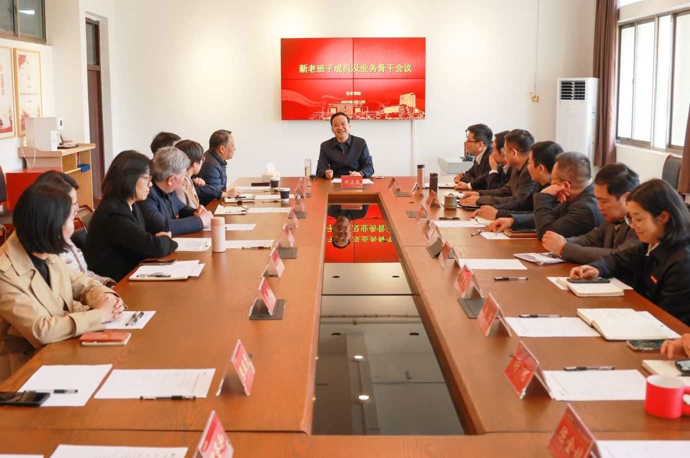 会上,匡才远汇报了2023年艺术学院建设推进情况、存在不足和2024年发展思路及重点工作计划。邢晓刚分享了工作经验,希望学院新领导班子接续努力,再创成绩。艺术学院各系系主任及骨干教师也结合本职工作进行了交流发言。