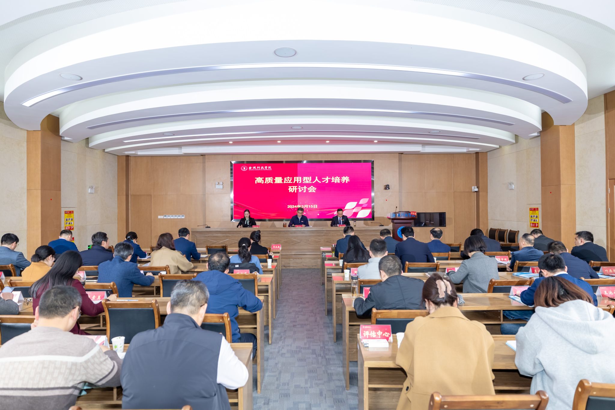 3月15日下午,学校在行政楼报告厅召开高质量应用型人才培养研讨会,校党委书记刘志远、校长刘永彪出席会议并讲话。审核评估自评报告起草组成员单位负责人,党委办公室、校长办公室、教务处、人力资源处、学生工作处、合作与发展规划处、研究生处、科技处、国际合作与交流处、招生与就业指导处、设备处、团委、教学质量评估中心、信息化建设与管理中心等部门主要负责人,各二级学院(部)院长、主任参加会议。会议由副校长顾晓燕主持。