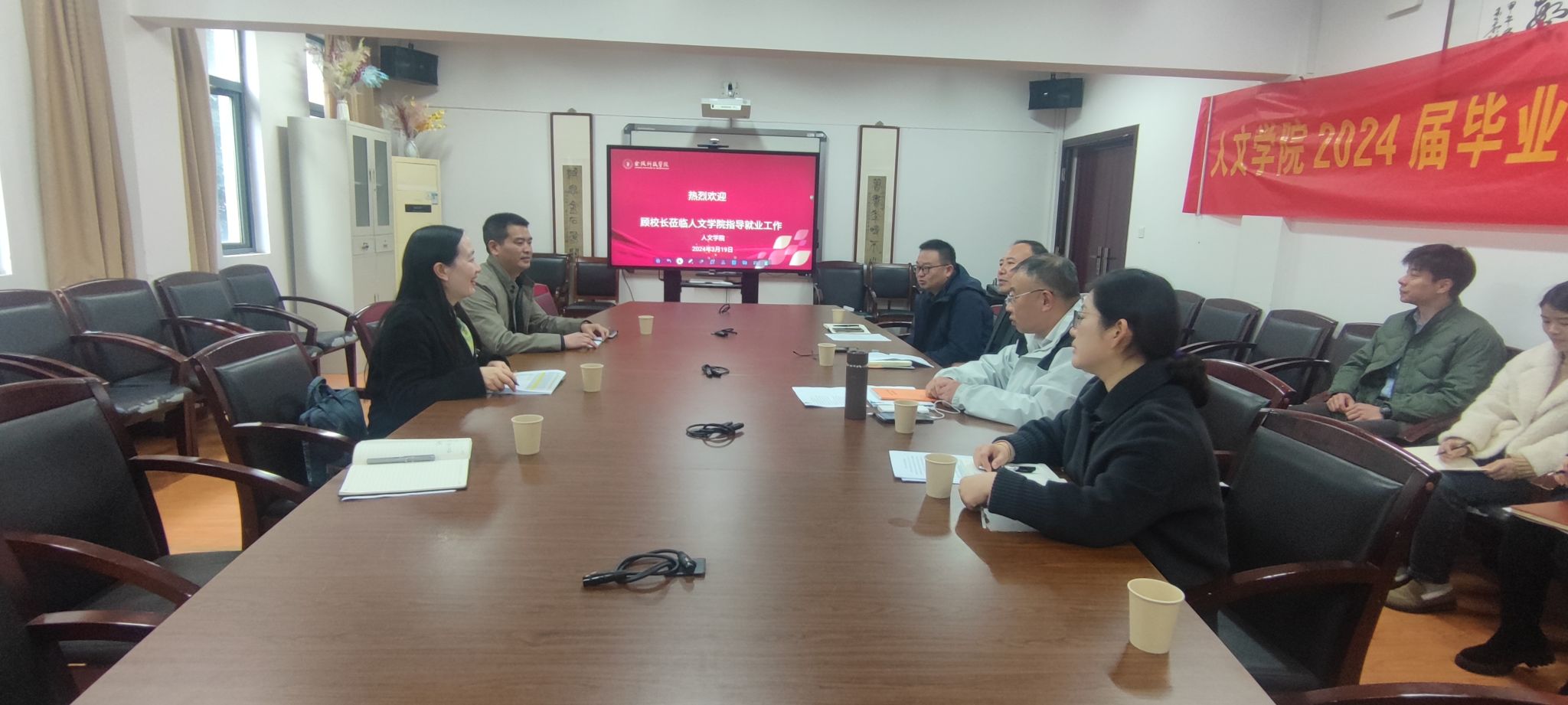 3月19日上午,副校长顾晓燕带领招生与就业指导处到幕府校区调研毕业生就业工作,人文学院、园艺园林学院、动物科学与食品工程学院的全体领导班子成员、就业干事、骨干教师代表、毕业班辅导员代表参加。