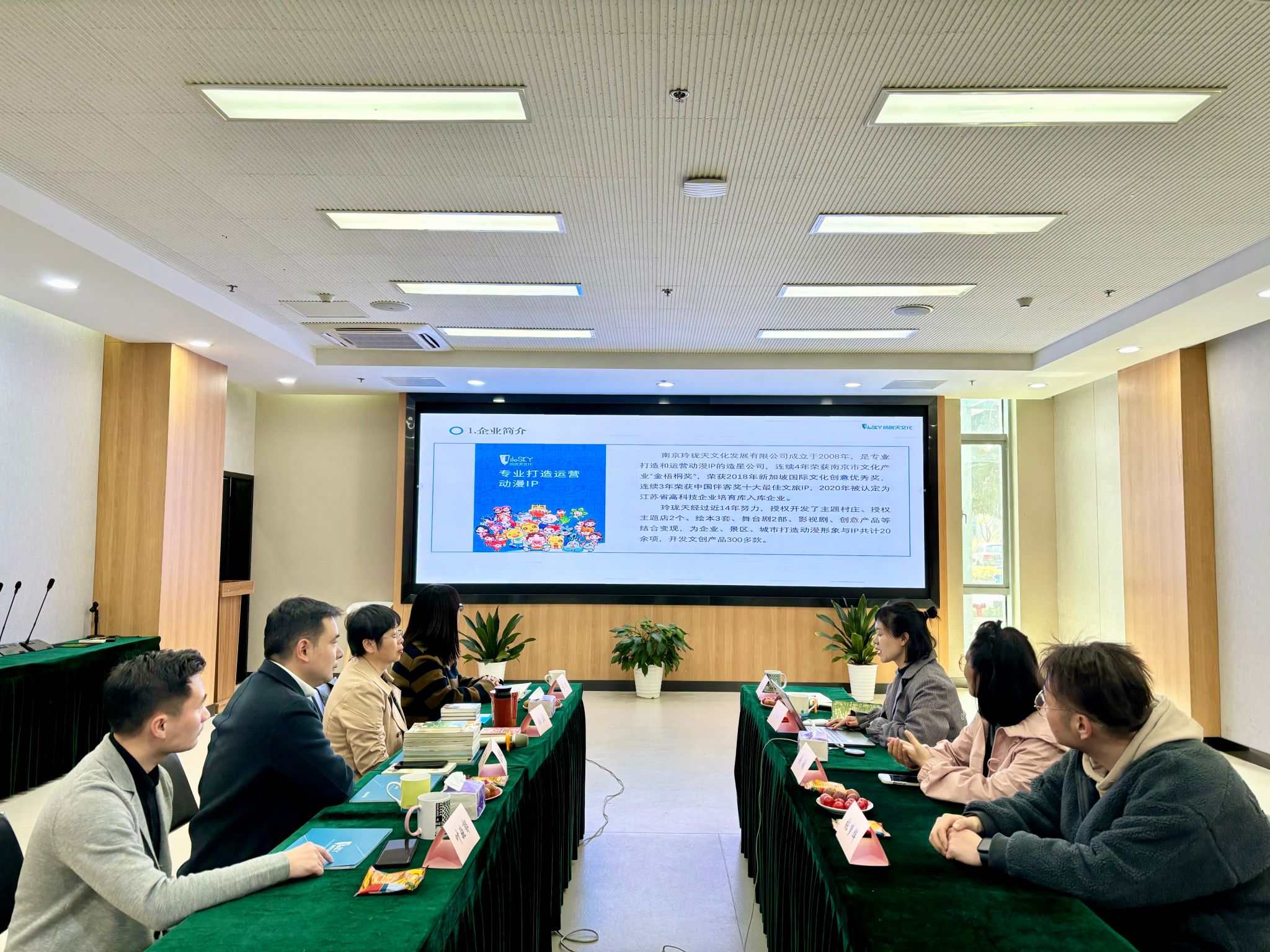 在南京玲珑天文化发展有限公司,张燕介绍了kaiyun官网的发展状况,希望能借助公司优势,共同打造一批具有地方特色的科普动漫作品,普及科学知识,提高公众科学素养。公司负责人李红萍介绍了公司在IP形象开发与运营方面的战略规划,分享了公司在打造动漫明星、形成完整产业链方面的成功案例和经验。